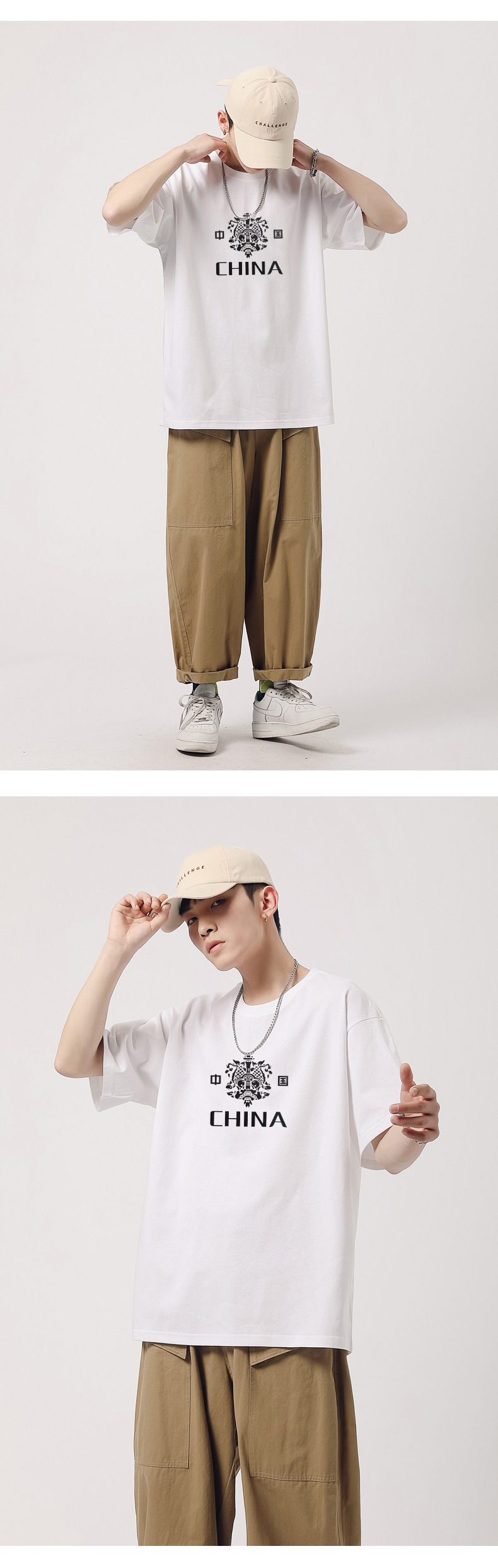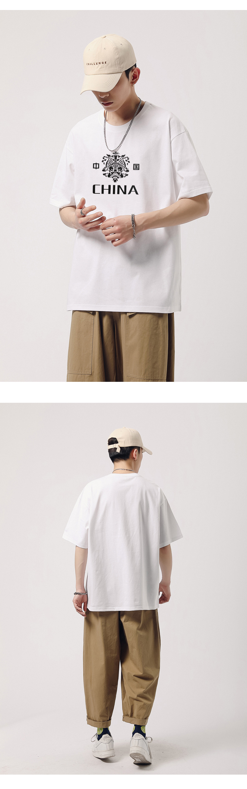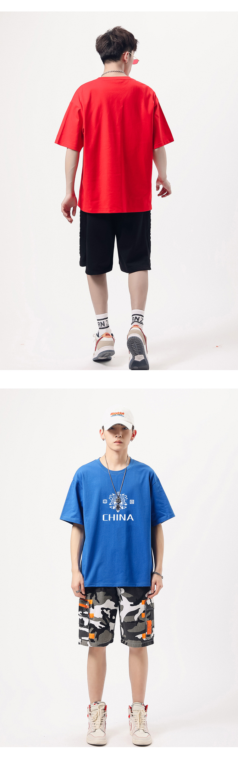 240g重磅纯棉短袖T恤男装夏季中国红印花半袖体恤圆领打底衫潮牌