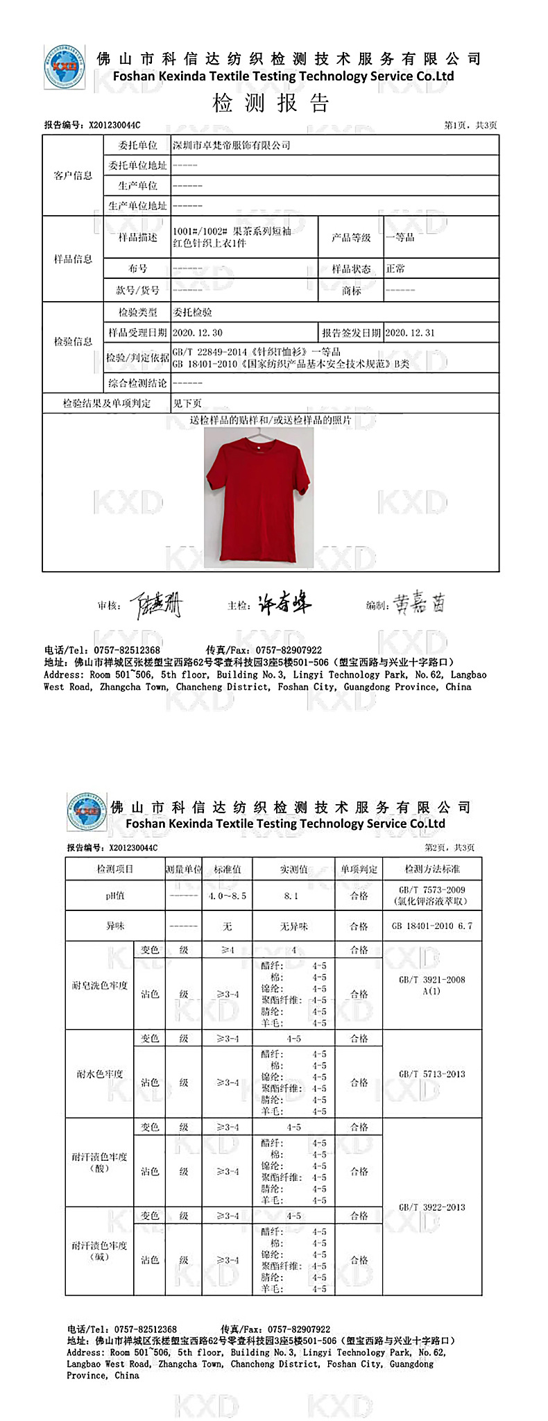 主面料成分的含量