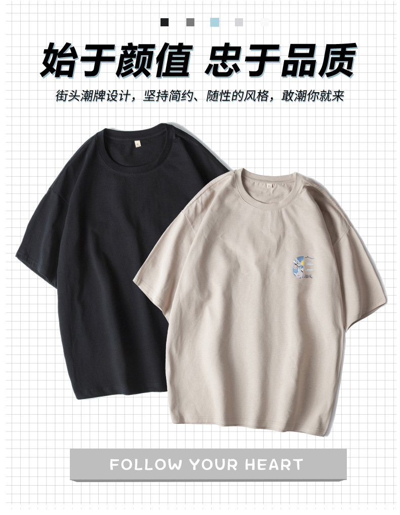 240克重磅纯棉圆领衫体恤夏季新款男装厚实不透印花简约半袖T恤潮
