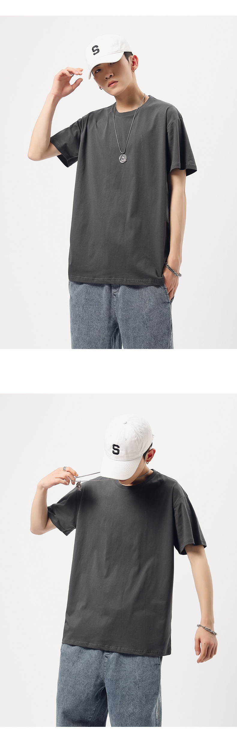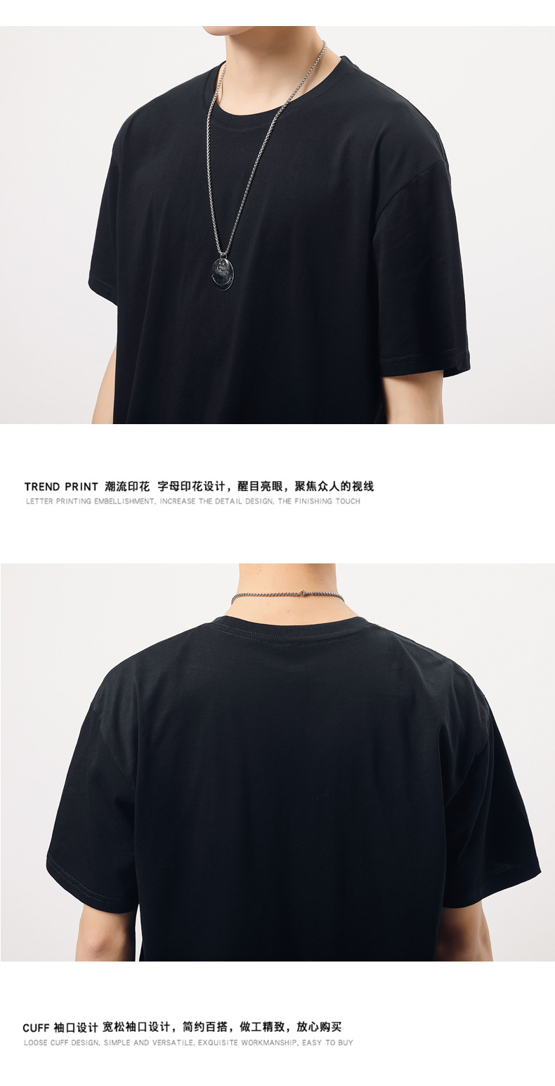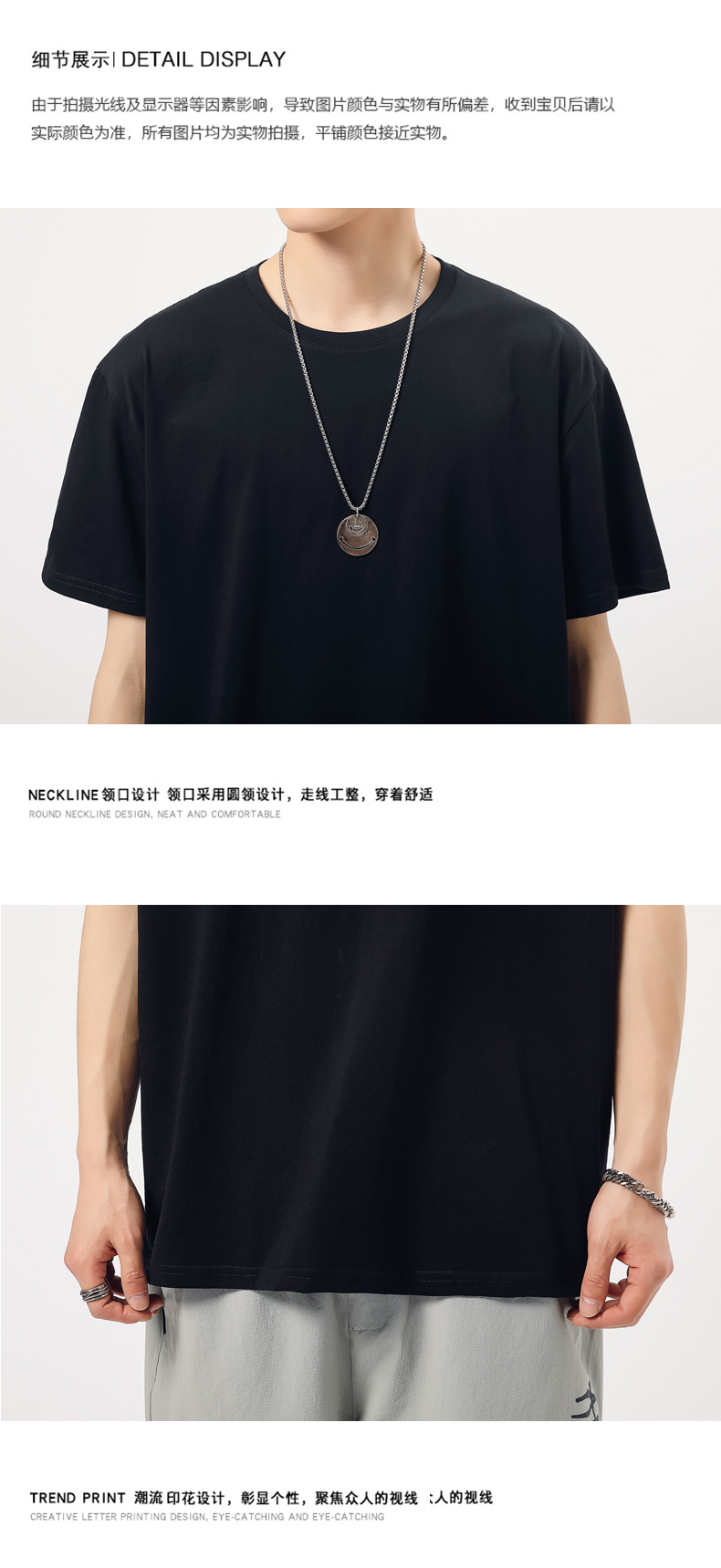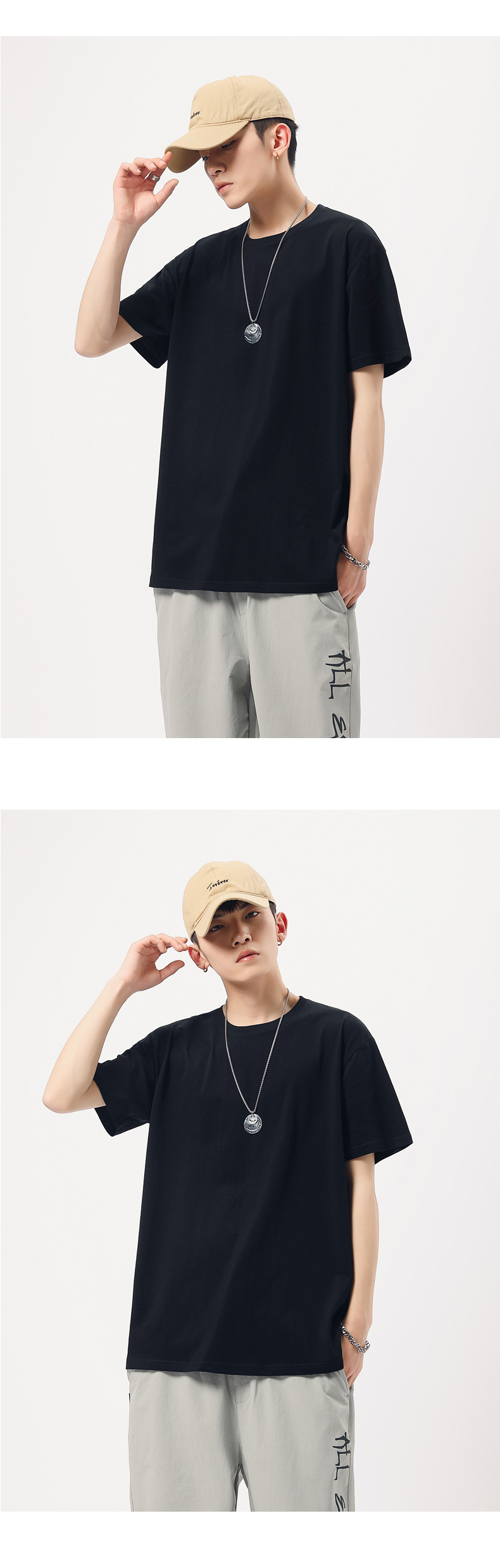 夏季港风男士简约短袖T恤黑色180克圆领半袖体恤百搭时尚上衣男装