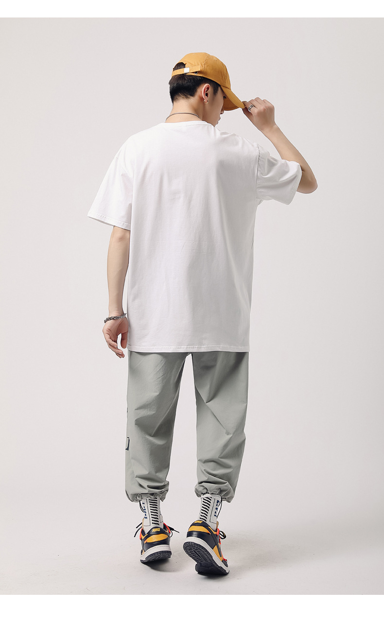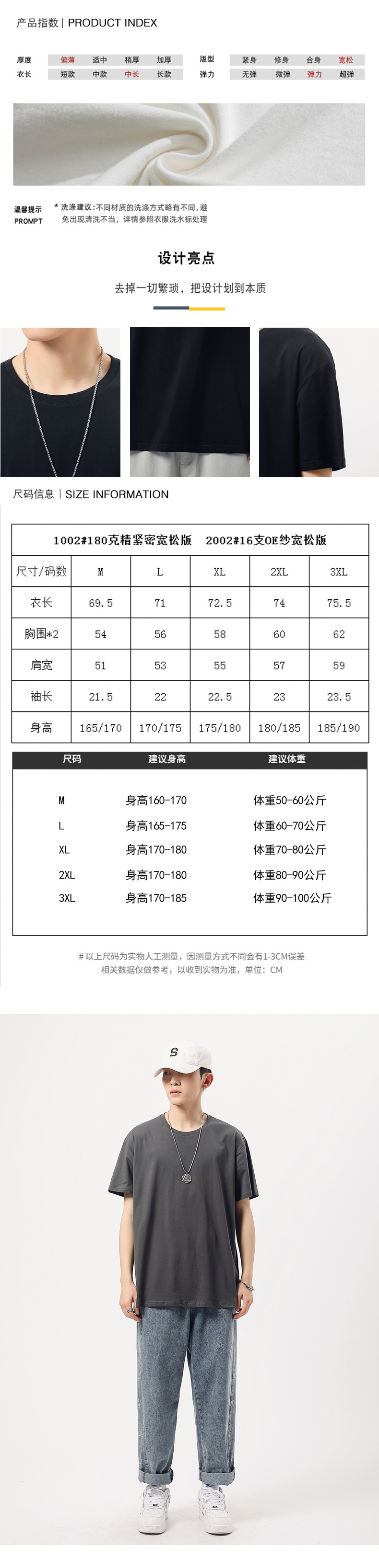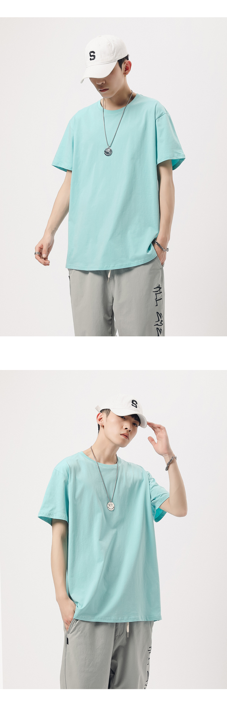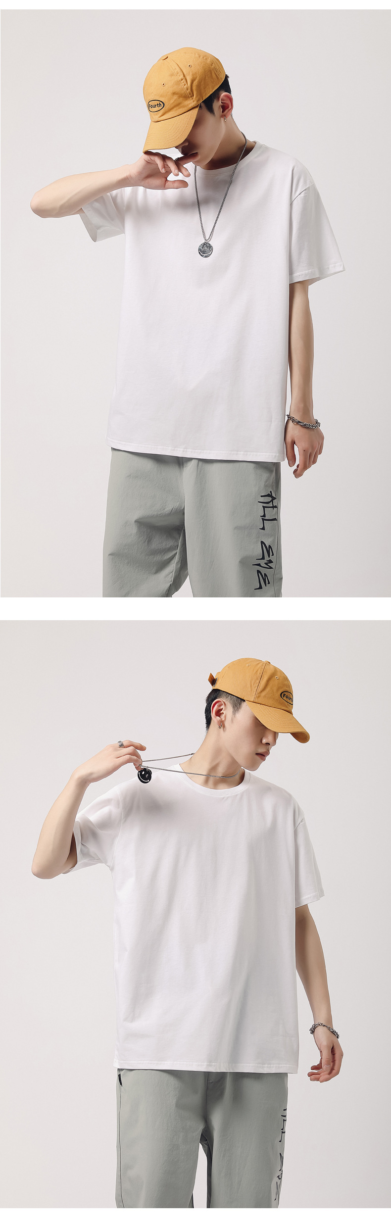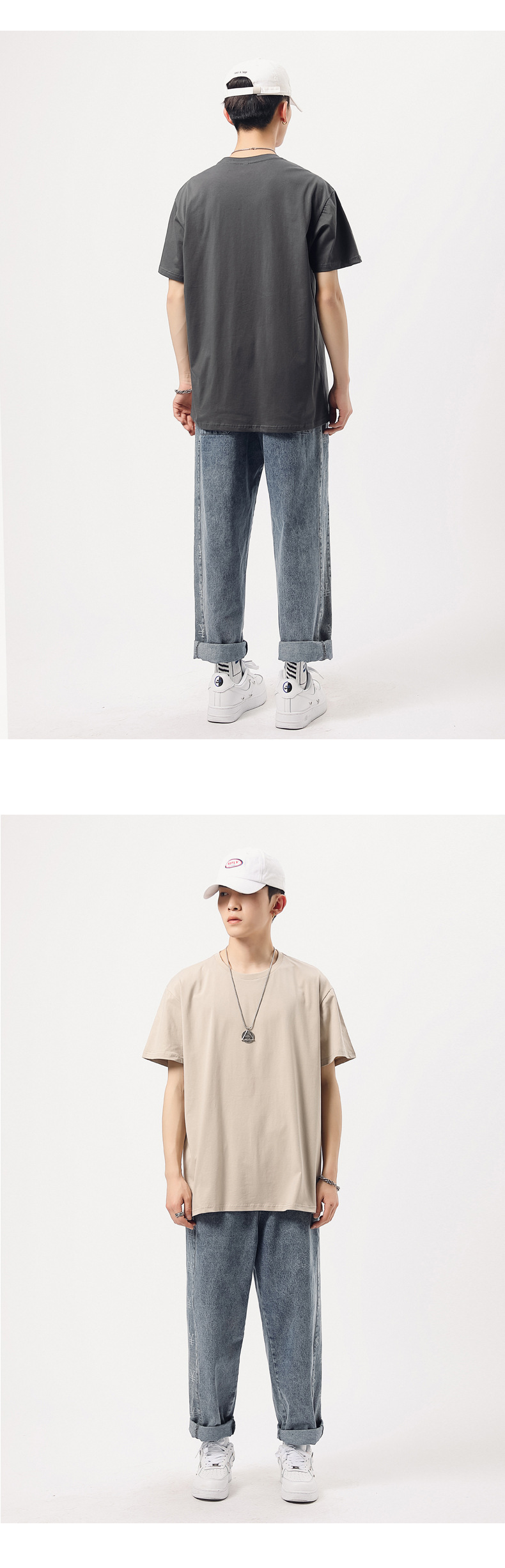 夏季港风男士简约短袖T恤黑色180克圆领半袖体恤百搭时尚上衣男装