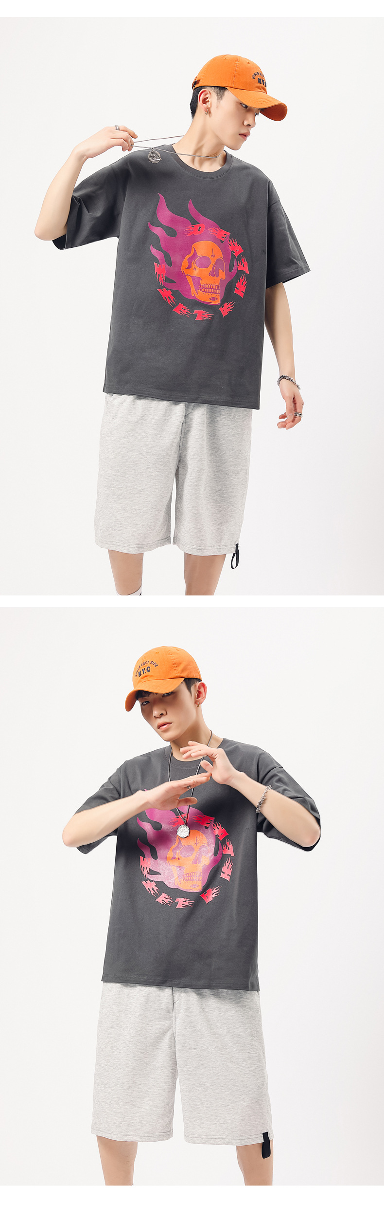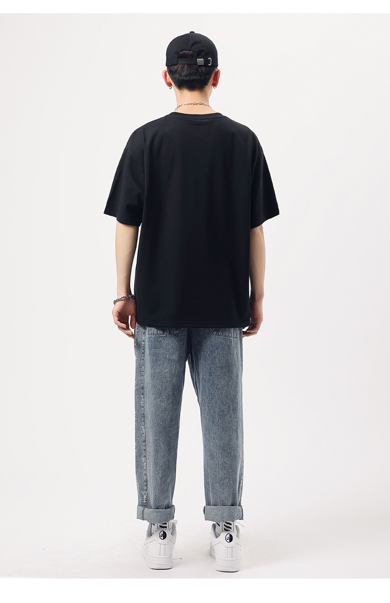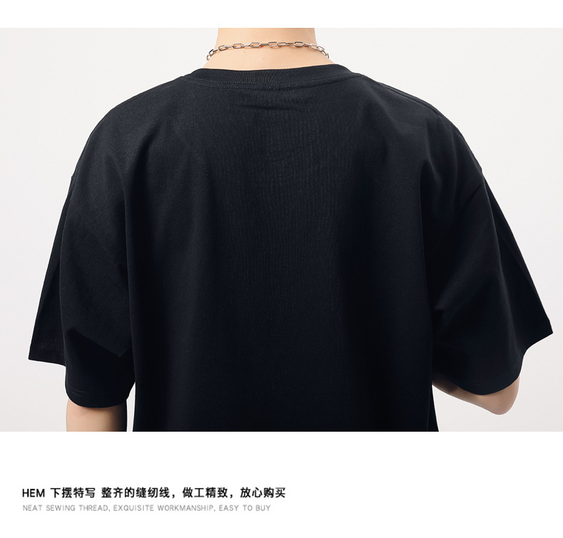 2021夏季港风青年男士纯棉短袖T恤240克重磅全棉半袖体恤衫圆领潮