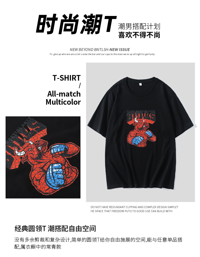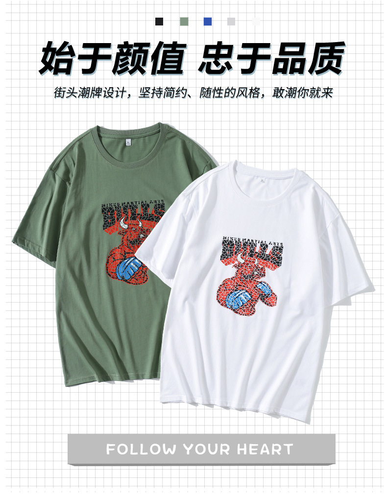 2021夏季新款青年纯棉短袖T恤男装宽松印花半截袖体恤衫圆领批发
