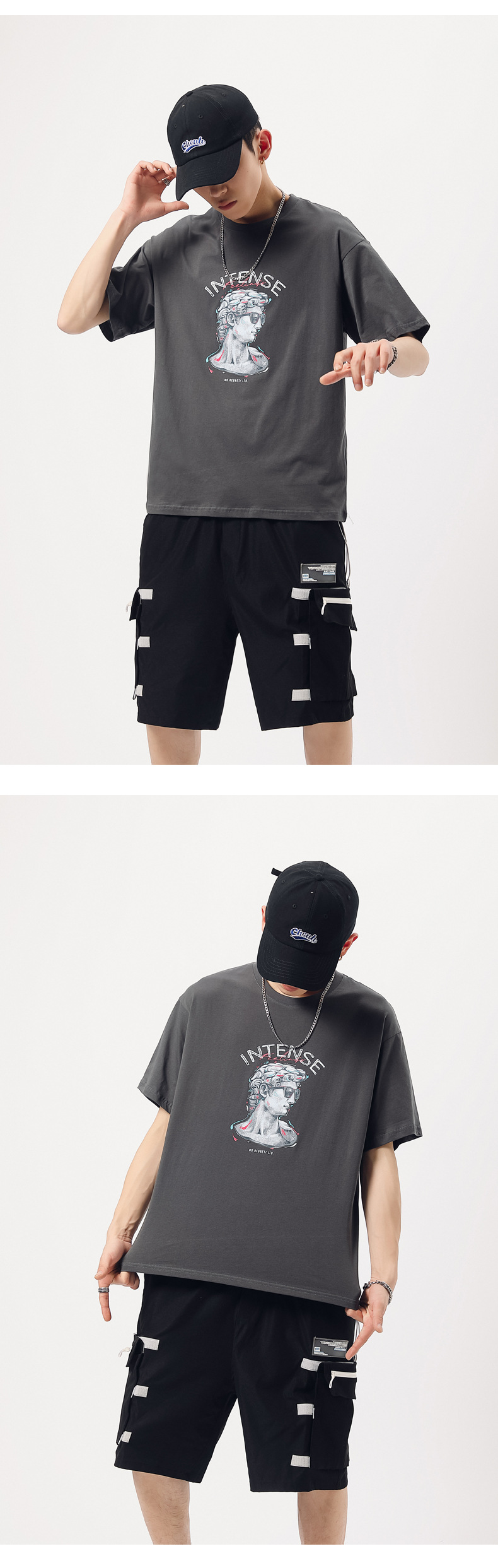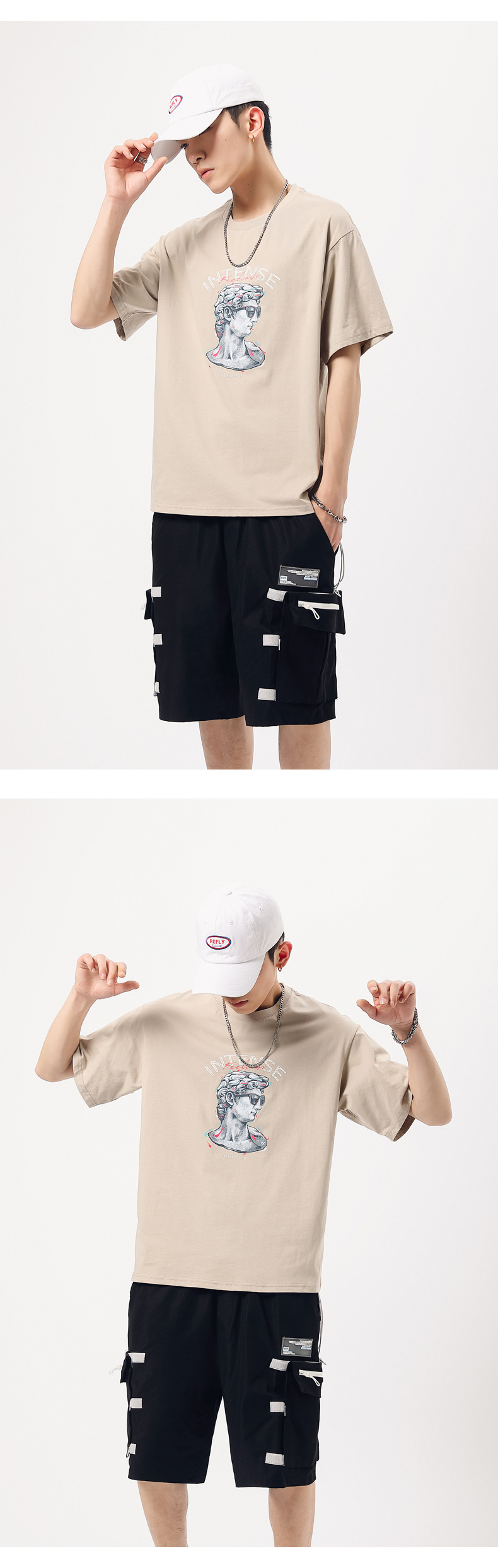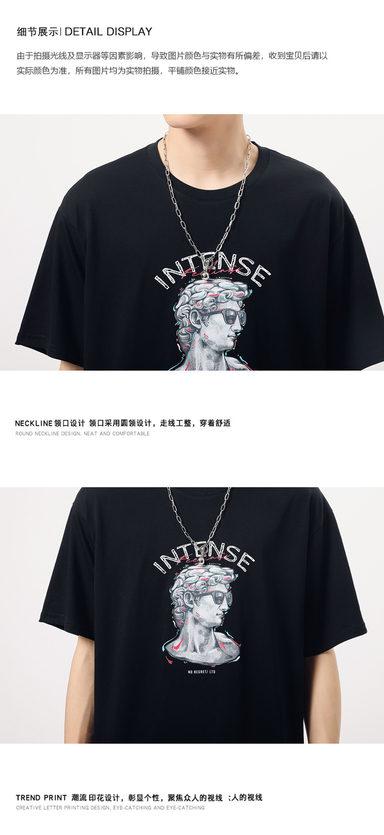 180g纯棉短袖T恤2021年夏季新款港风青年印花半袖体恤圆领衫男潮t