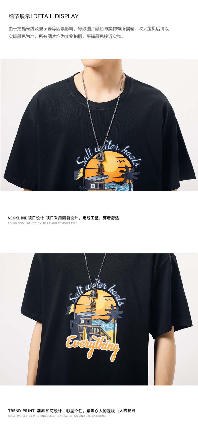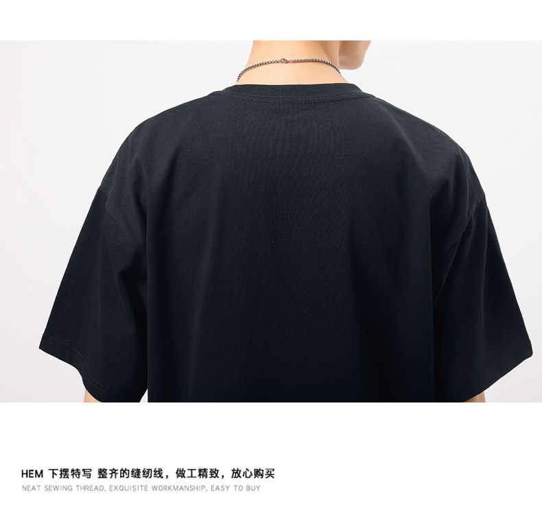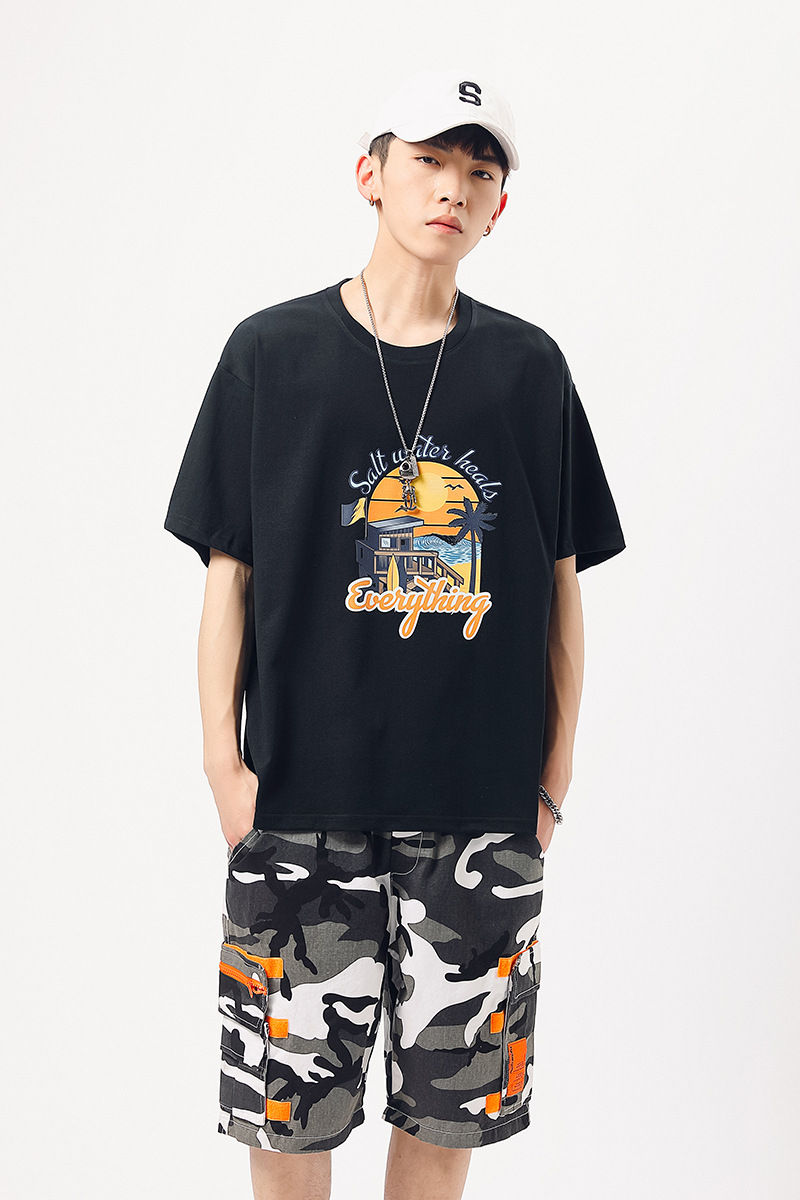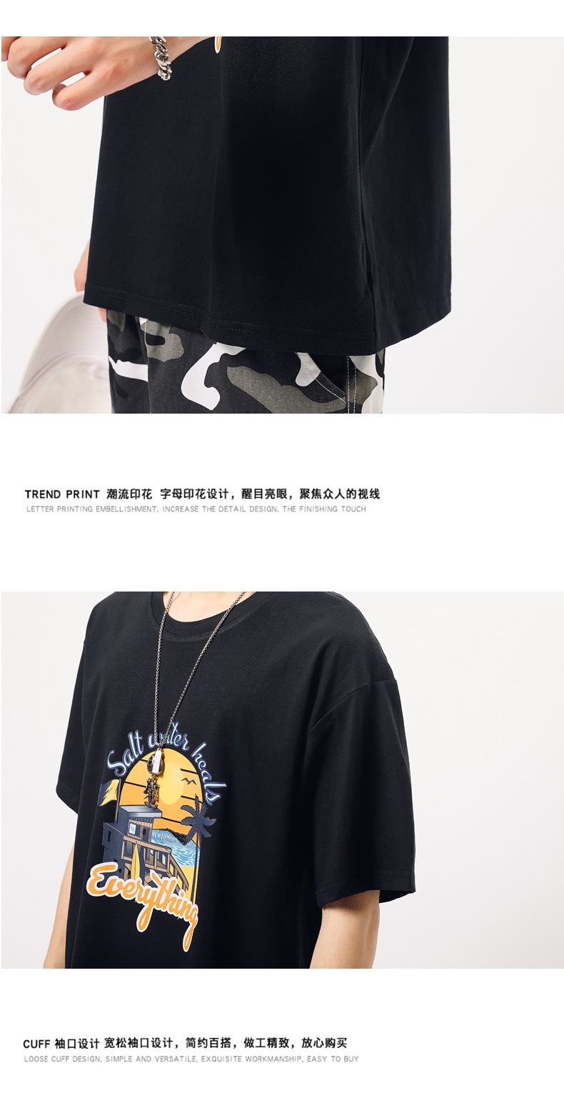 夏季新款印花短袖T恤青年男装180g纯棉落肩袖小清新半袖体恤衫潮
