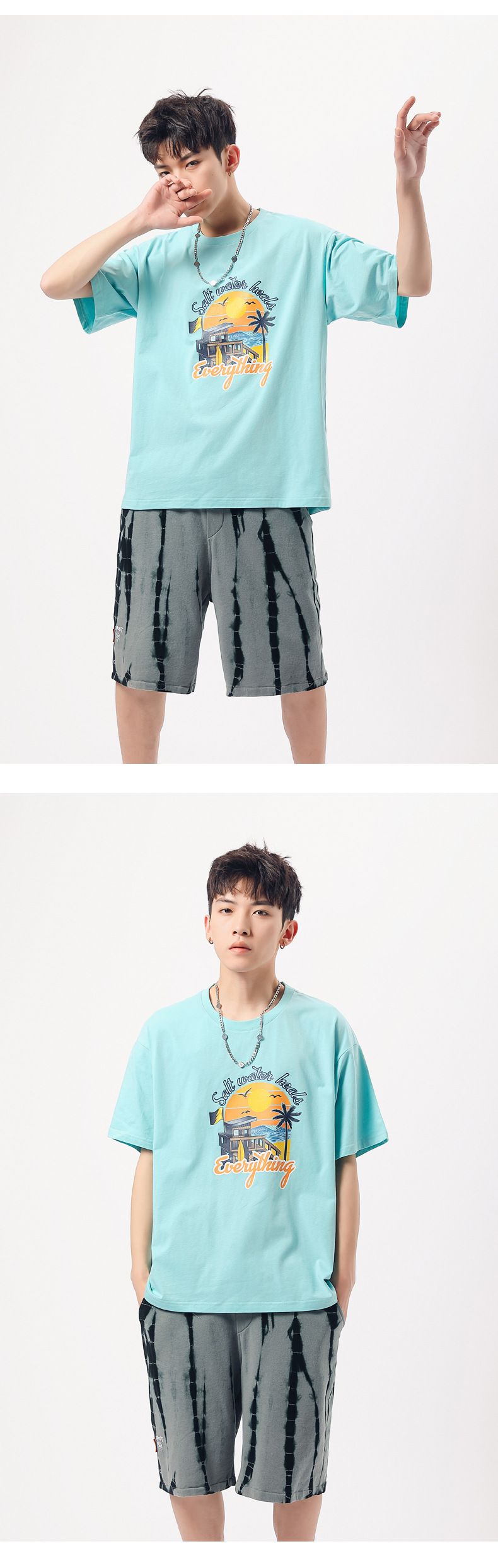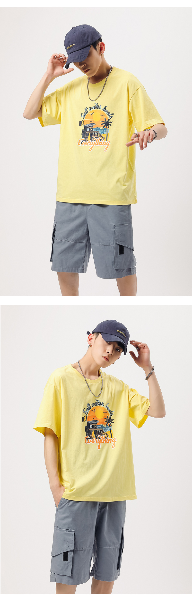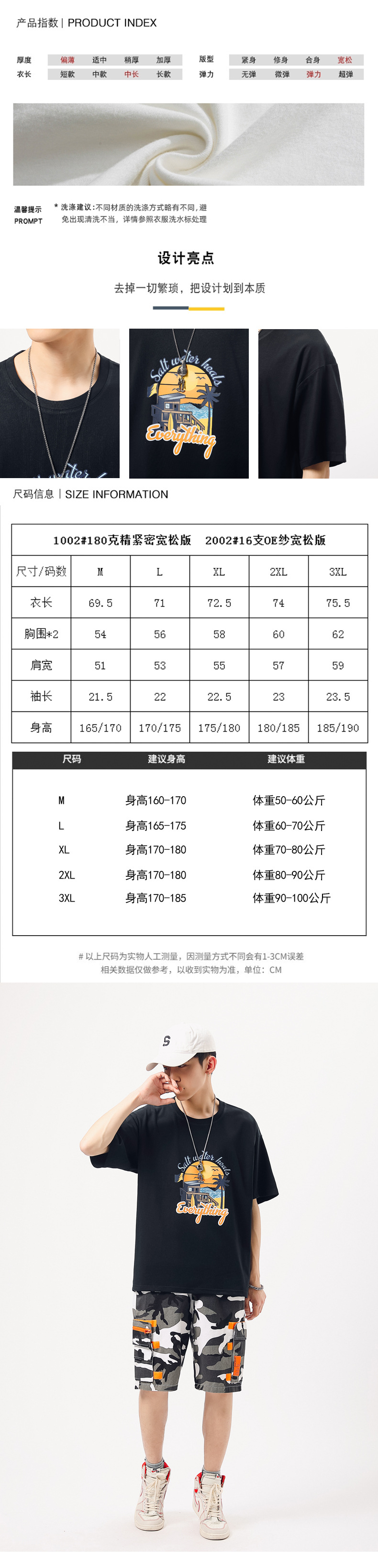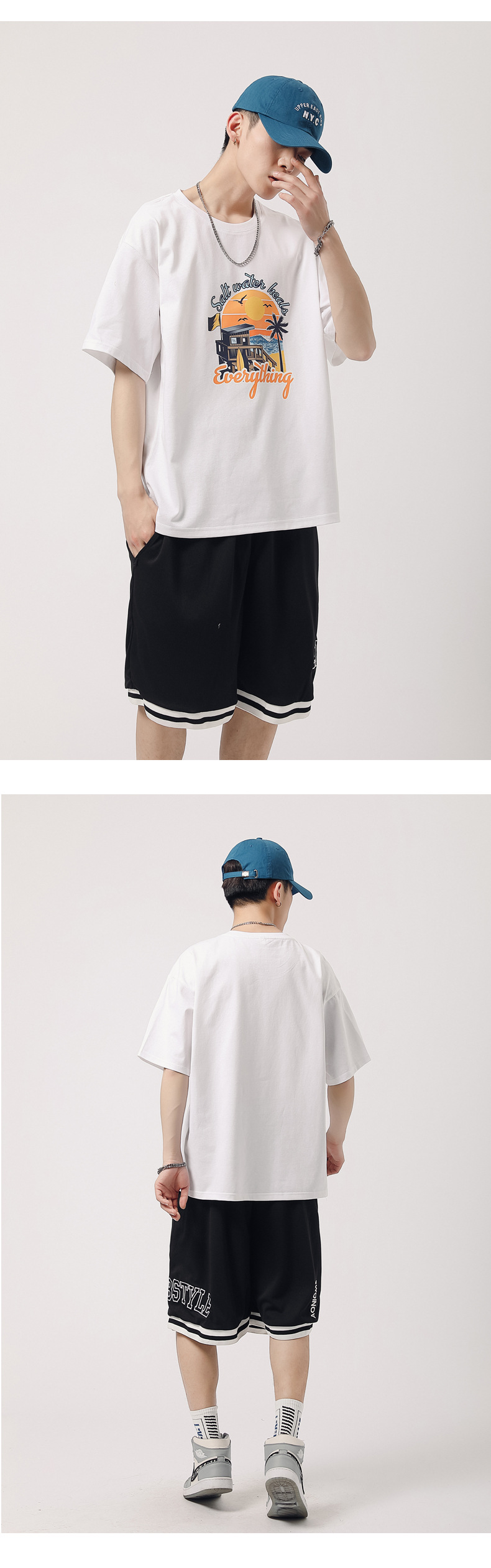 夏季新款印花短袖T恤青年男装180g纯棉落肩袖小清新半袖体恤衫潮