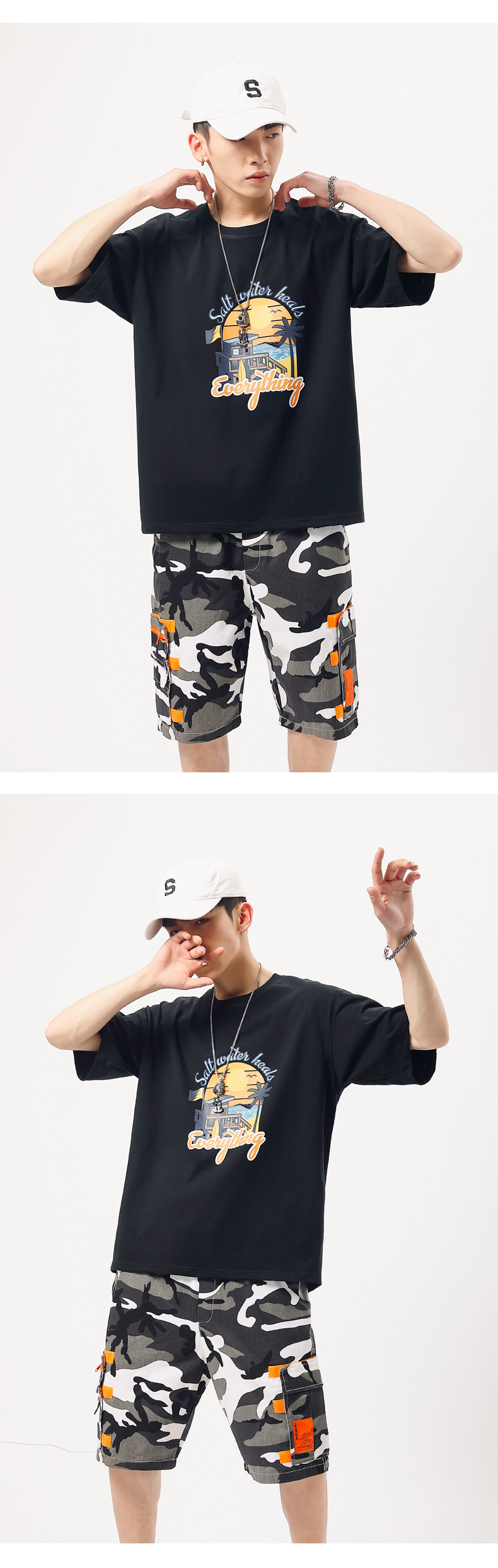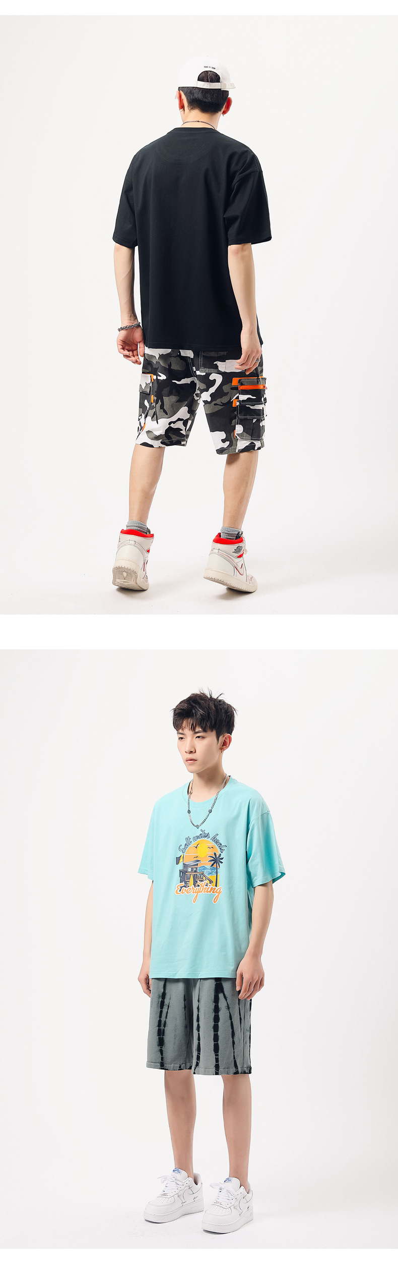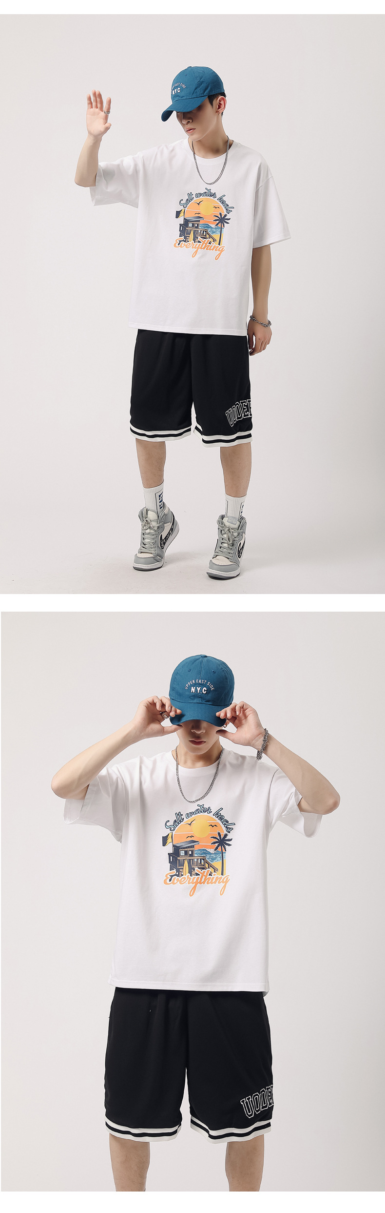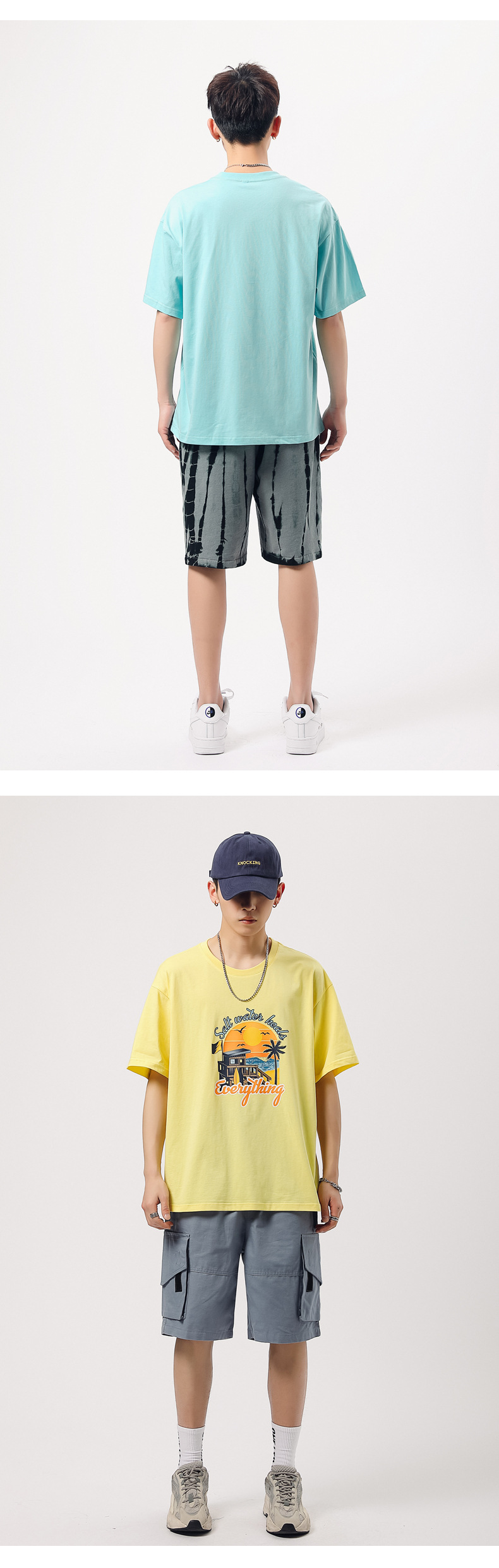 夏季新款印花短袖T恤青年男装180g纯棉落肩袖小清新半袖体恤衫潮