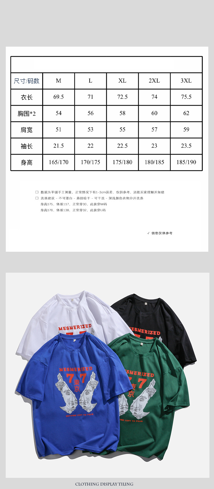 夏季青年男士240g纯棉短袖T恤重磅厚实不透个性印花半袖体恤潮牌t