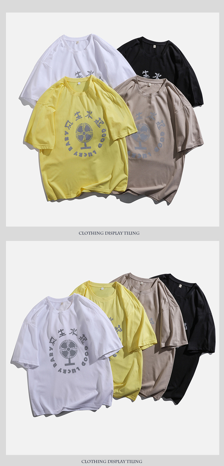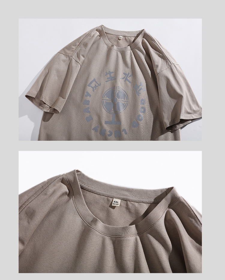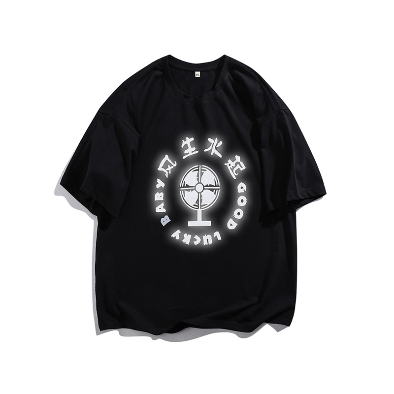 夏季青少年男士纯棉短袖t恤潮牌圆领宽松夜光印花半袖体恤现货男t