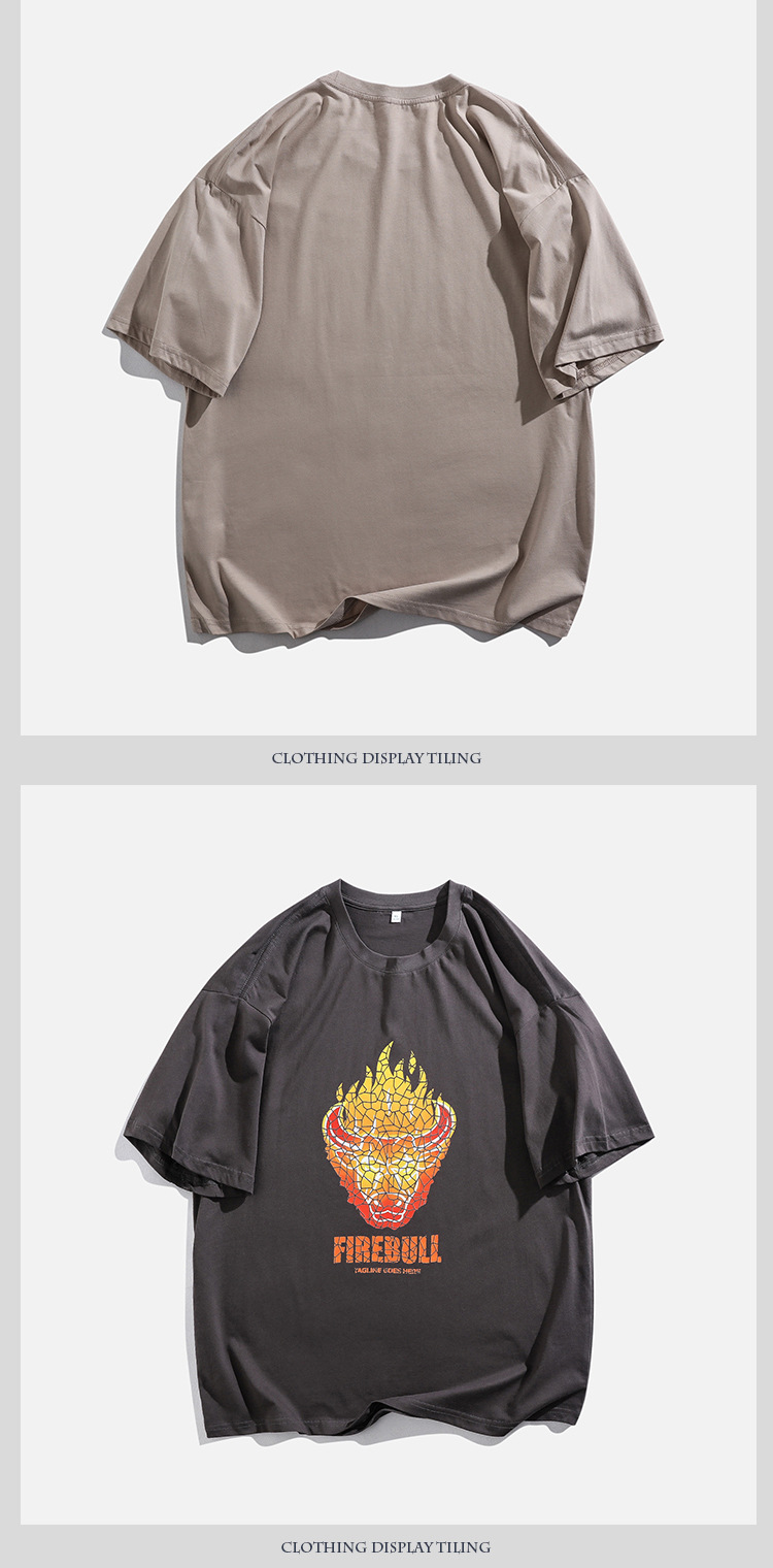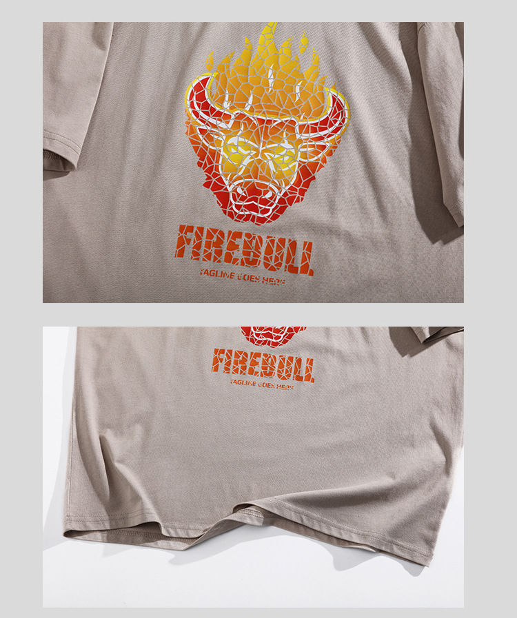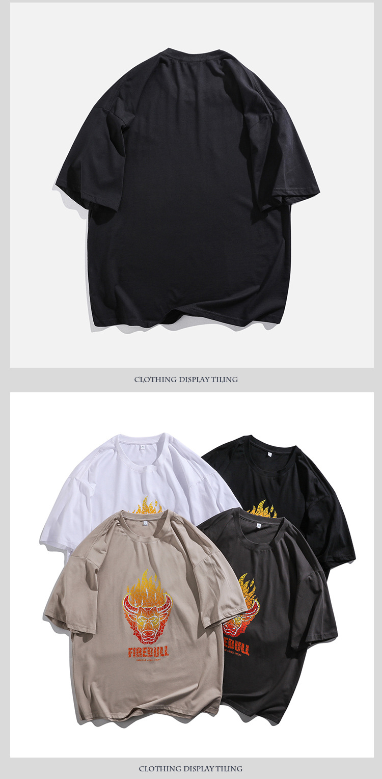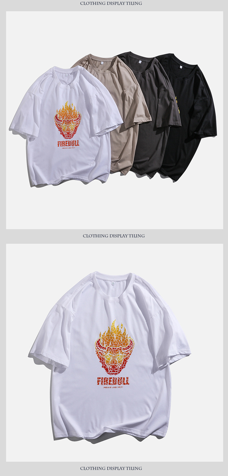 2021夏季新款火焰牛印花T恤男装180g纯棉短袖体恤衫宽松圆领潮男t