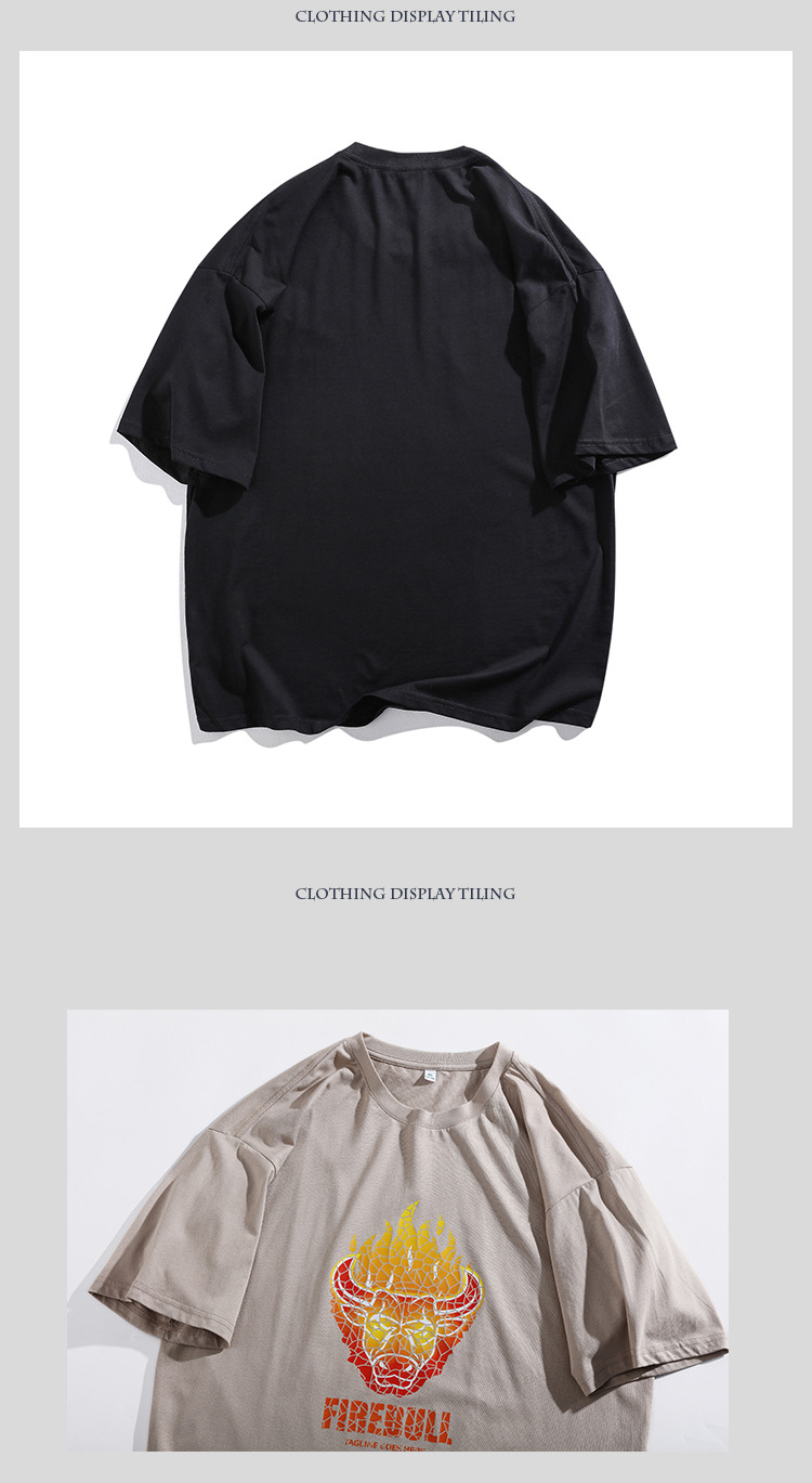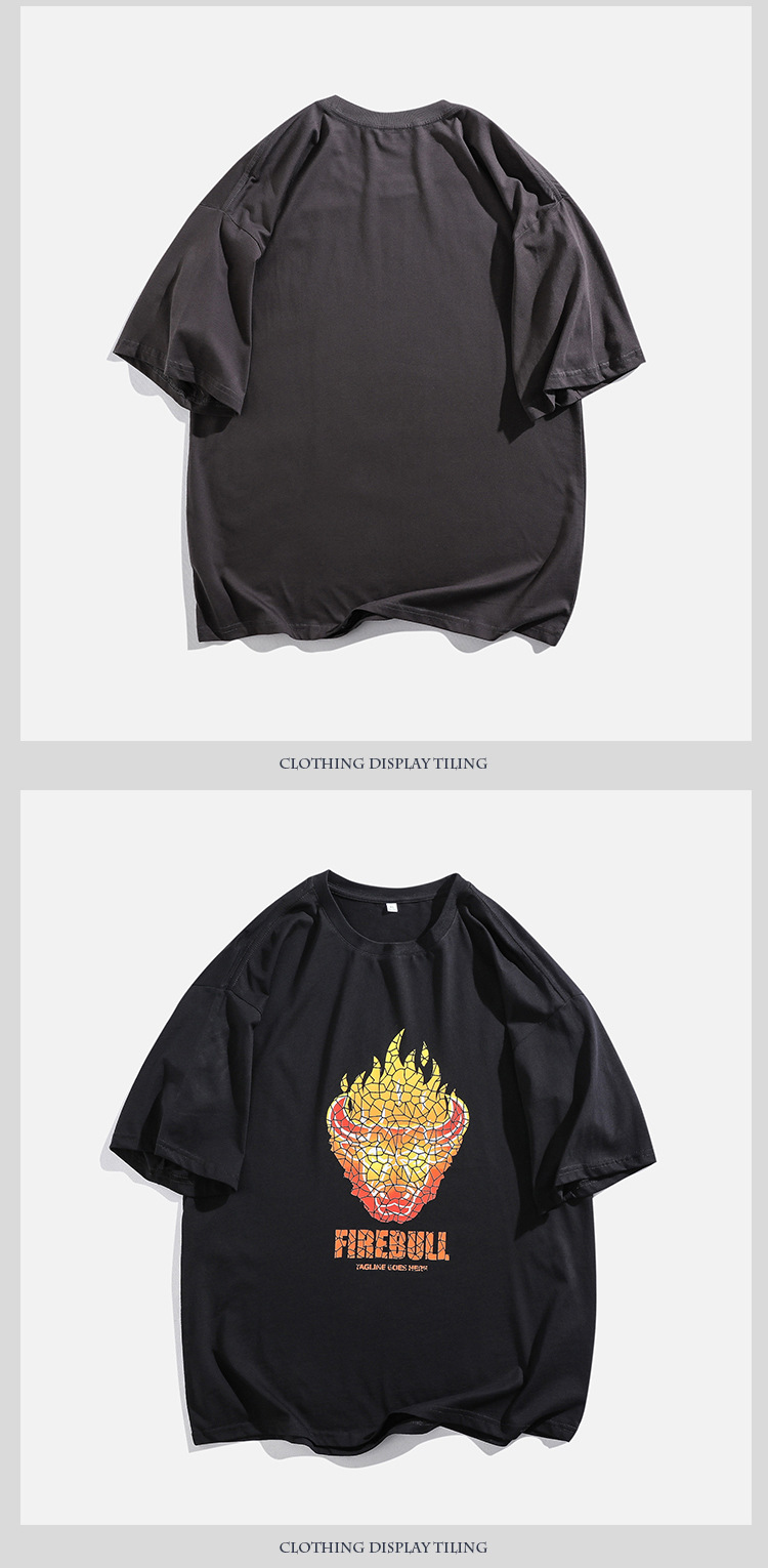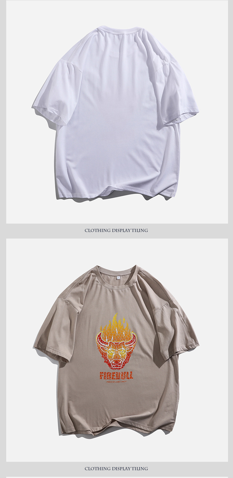 2021夏季新款火焰牛印花T恤男装180g纯棉短袖体恤衫宽松圆领潮男t