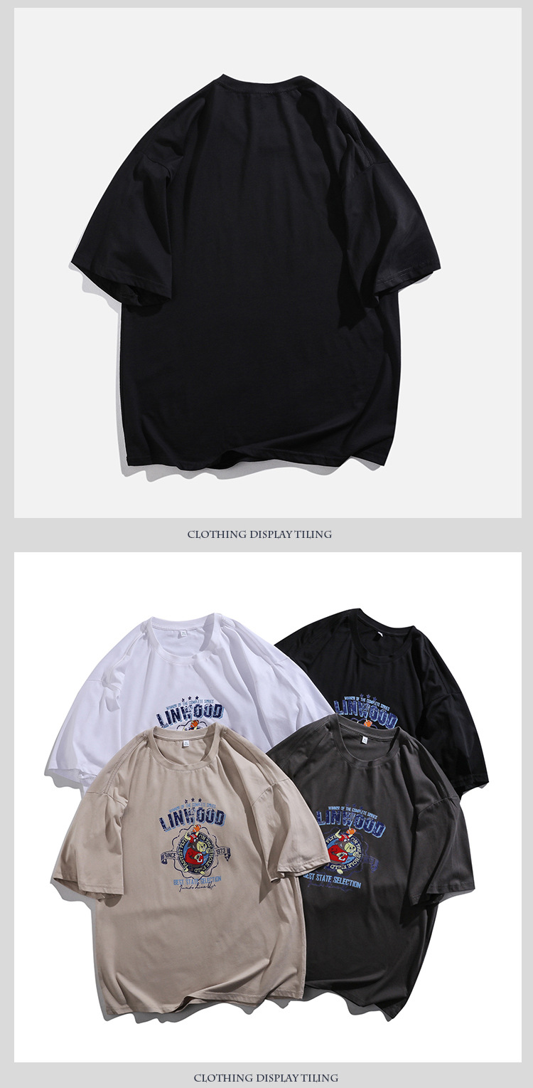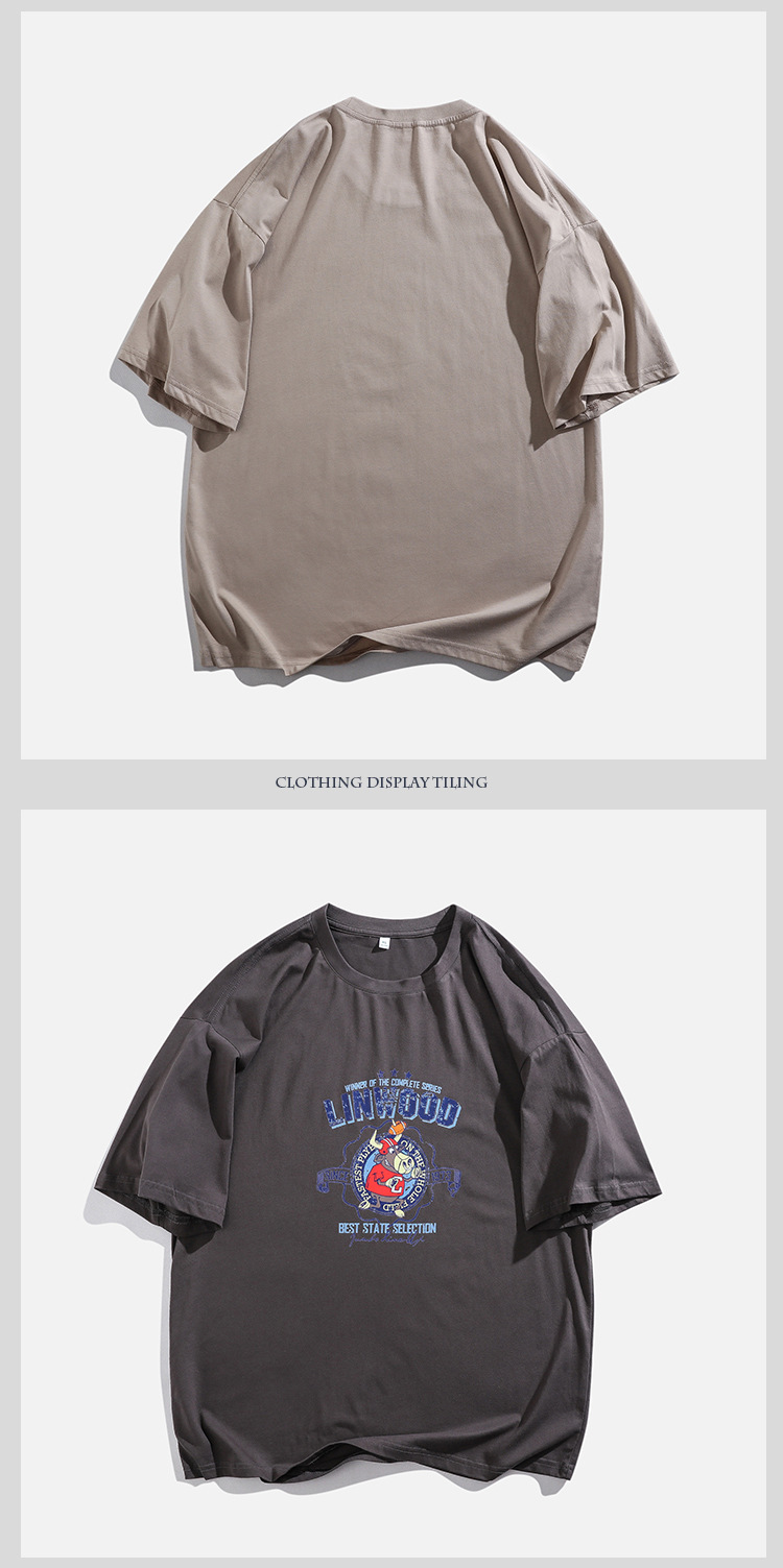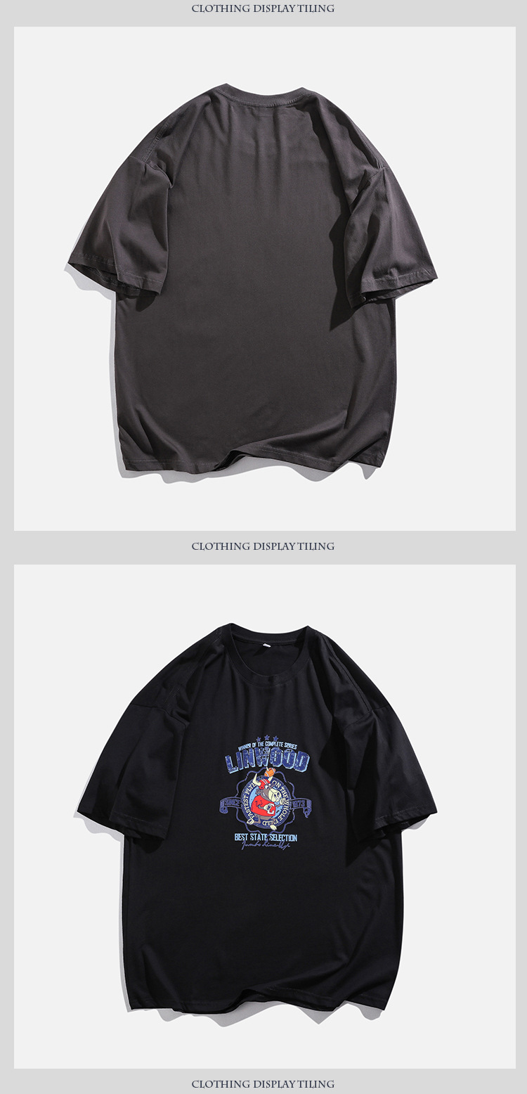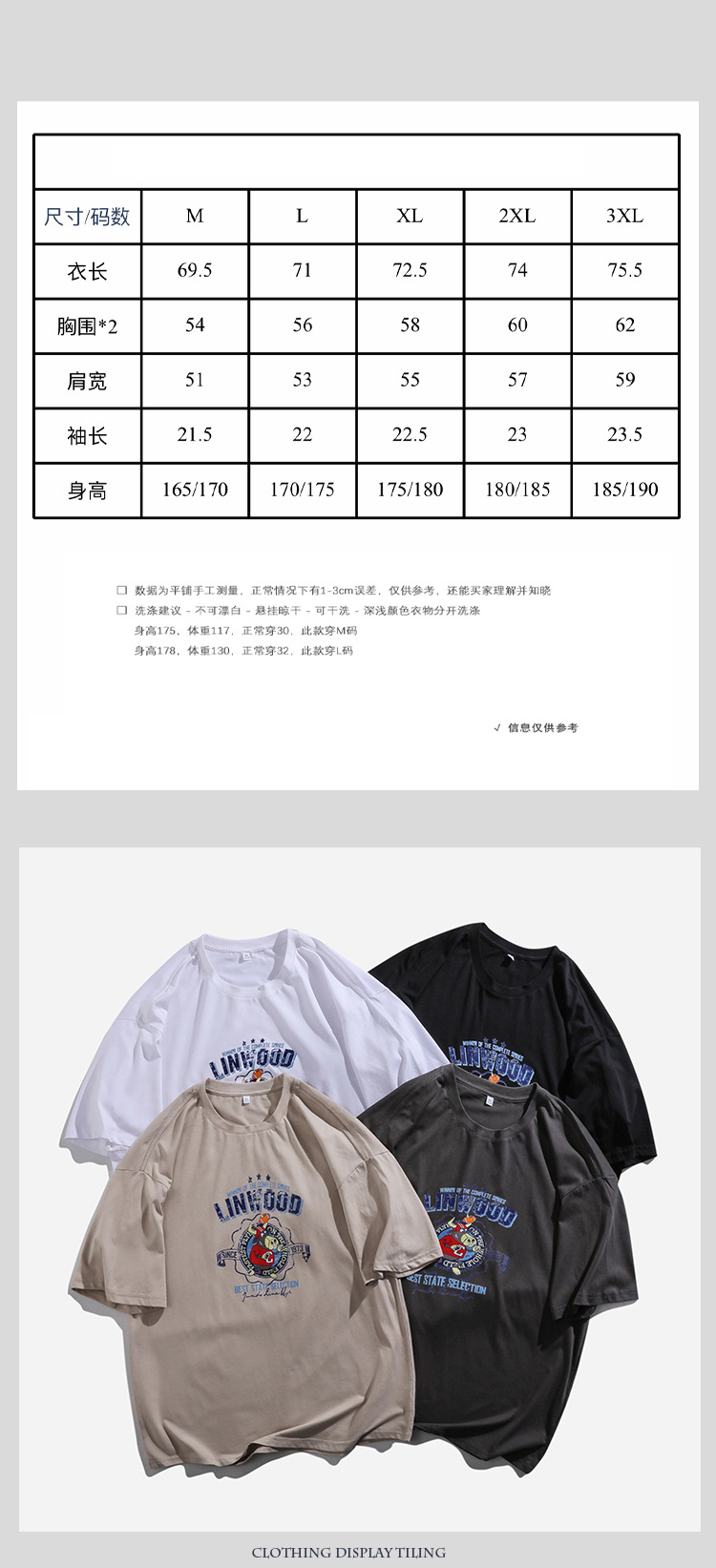 夏季港风男装印花短袖t恤180g纯棉圆领宽松落肩袖体恤男半袖上衣