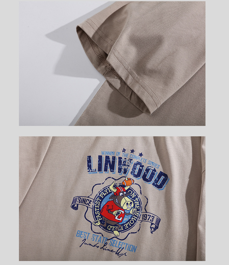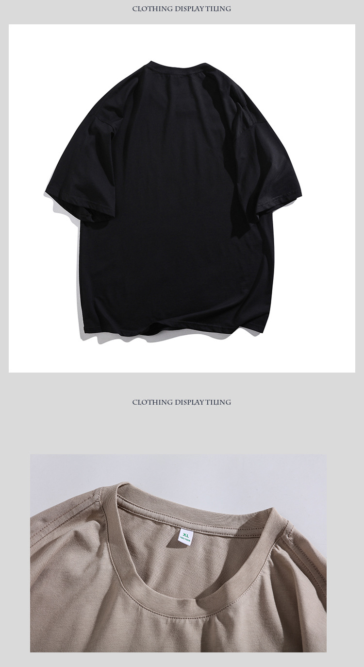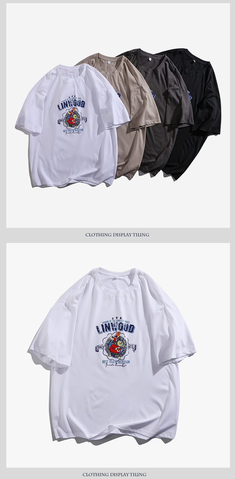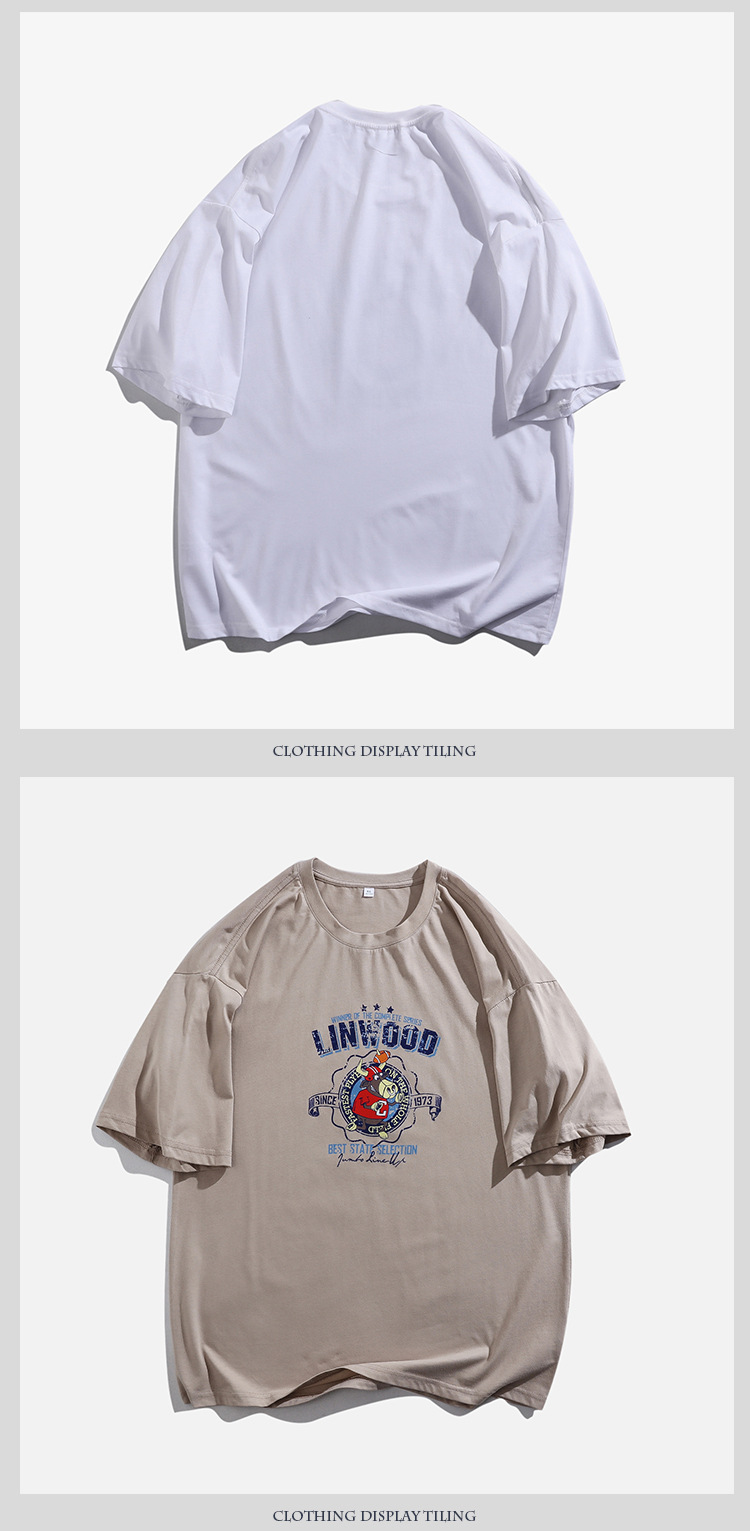 夏季港风男装印花短袖t恤180g纯棉圆领宽松落肩袖体恤男半袖上衣