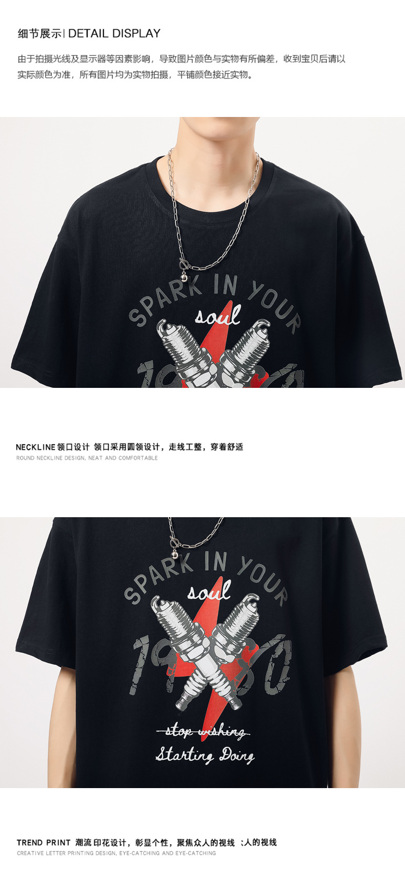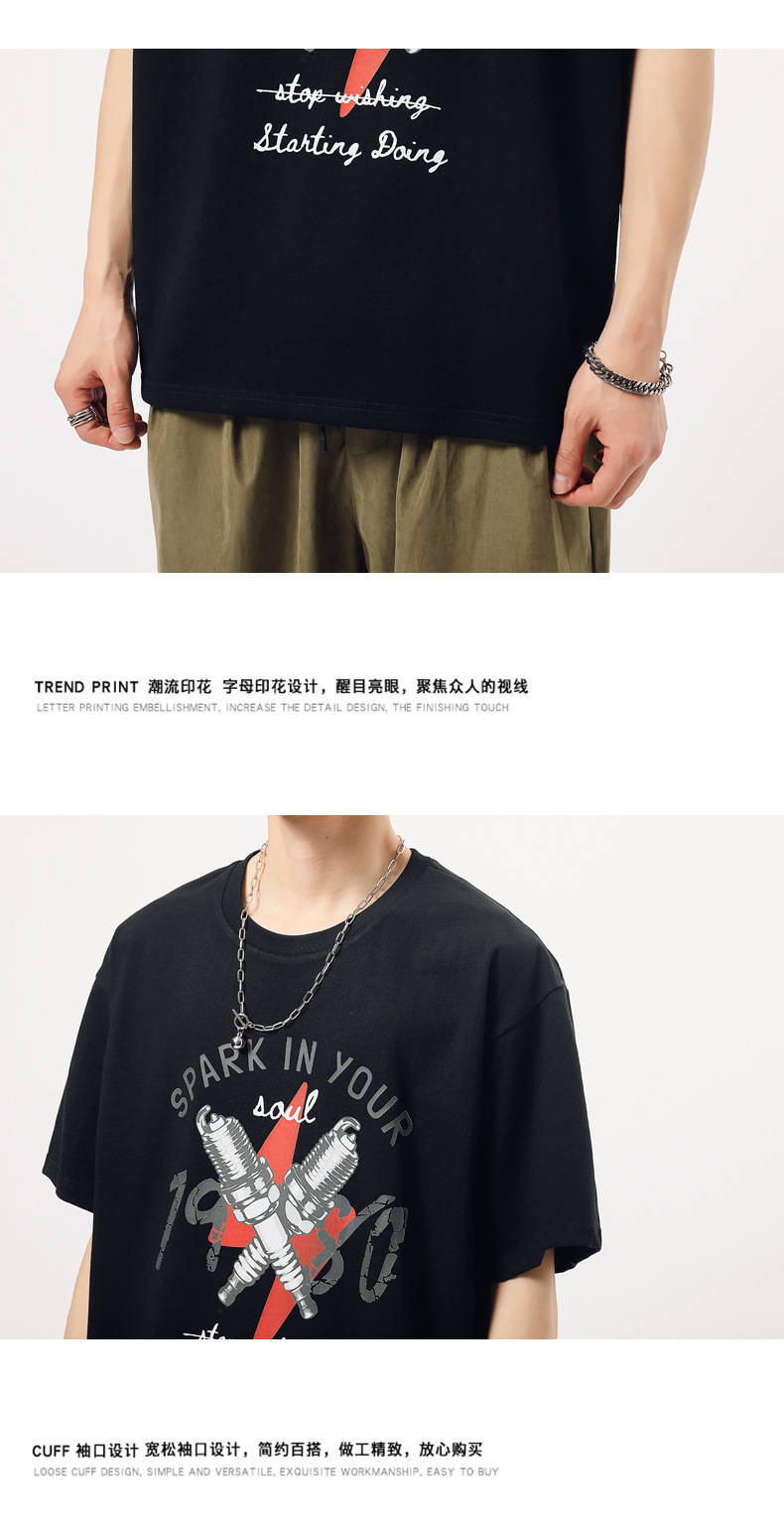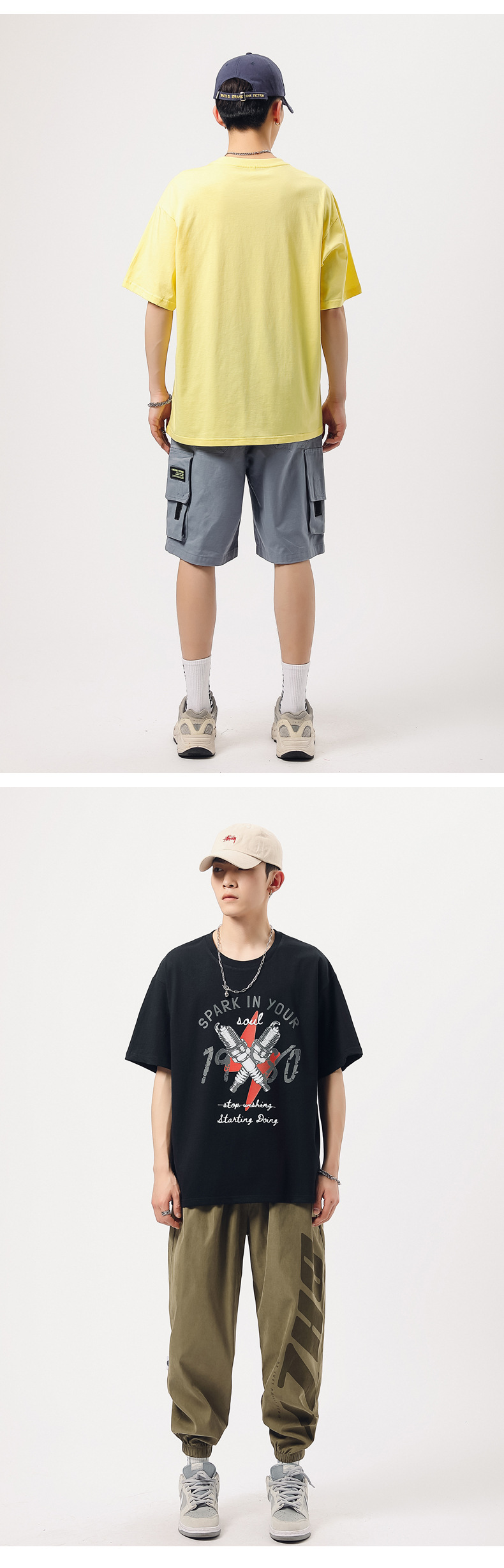 2021新款港风日系180克短袖男潮流T恤衫休闲圆领上衣体恤男装批发