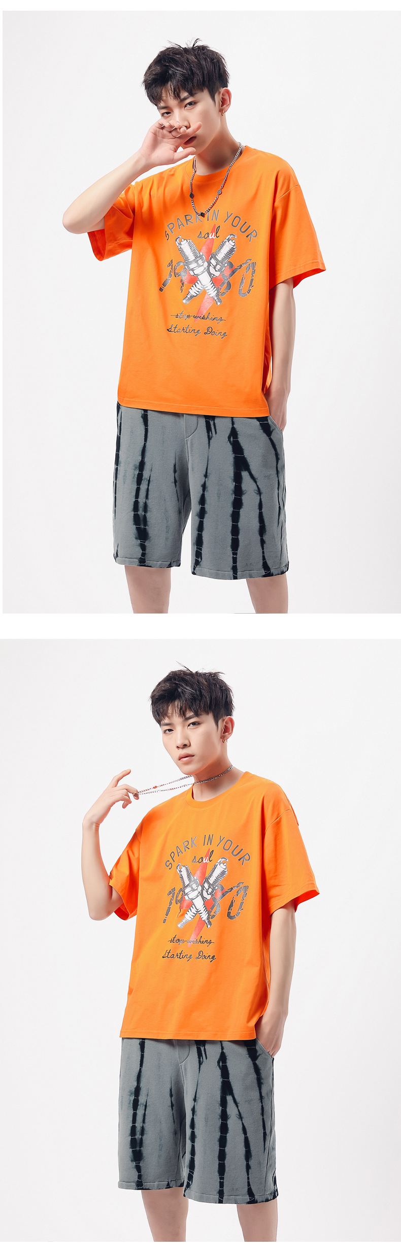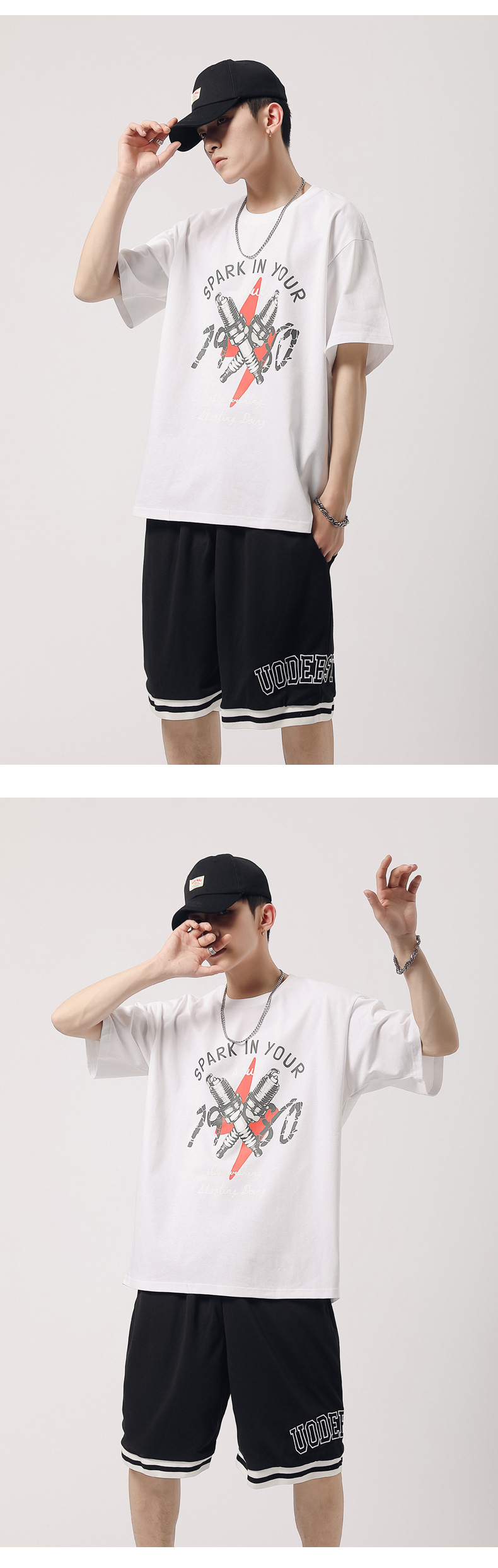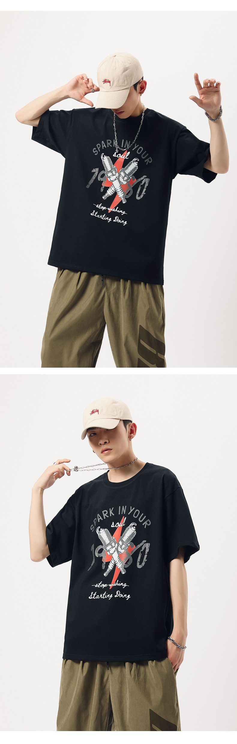 2021新款港风日系180克短袖男潮流T恤衫休闲圆领上衣体恤男装批发