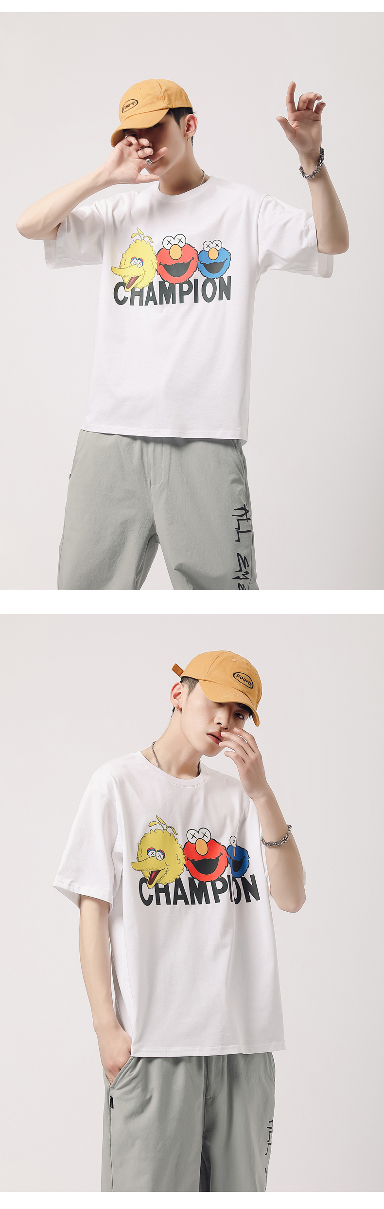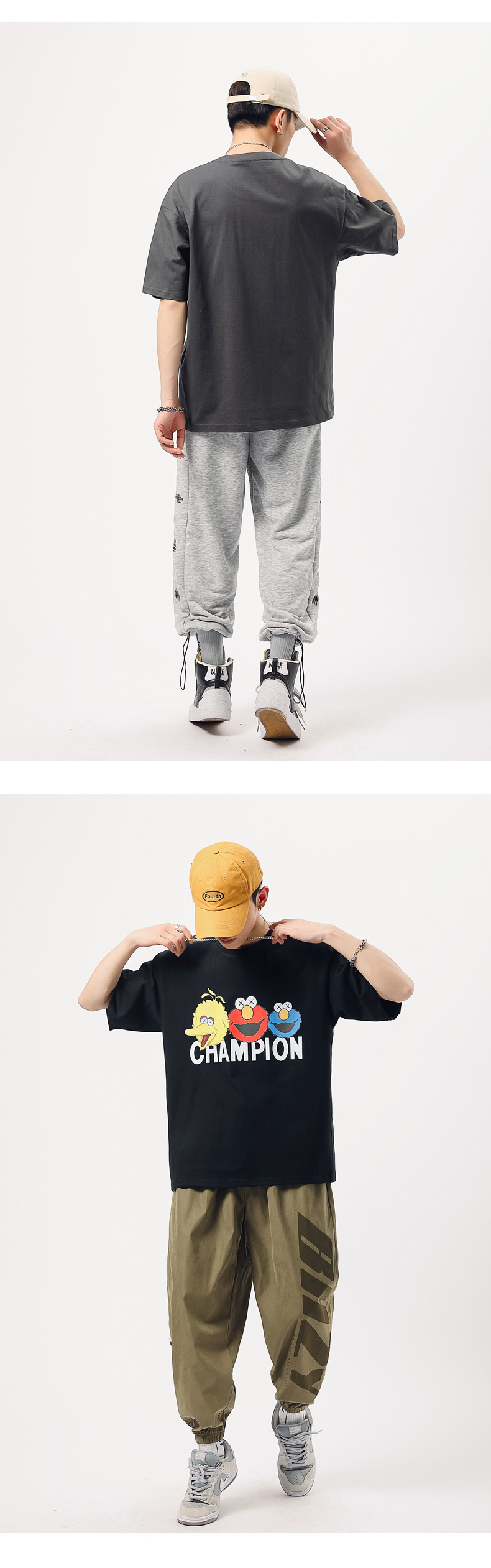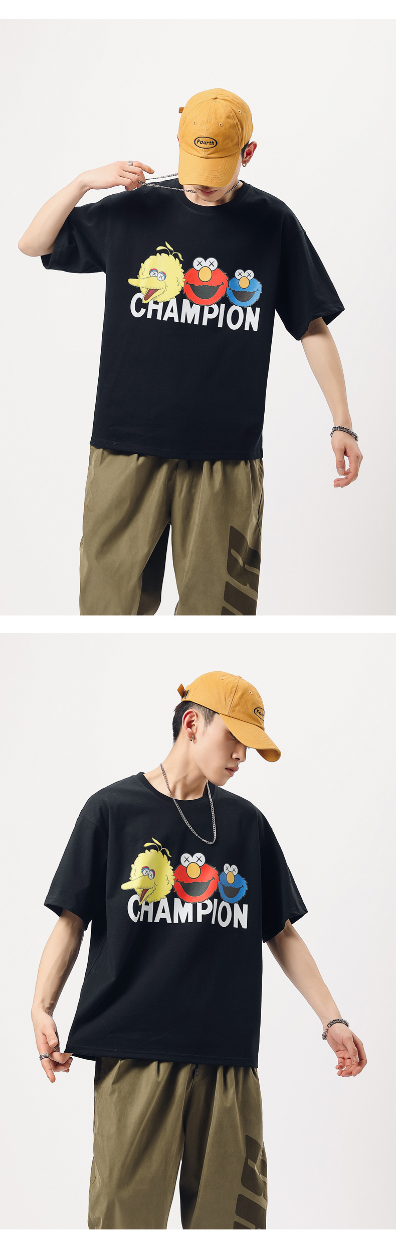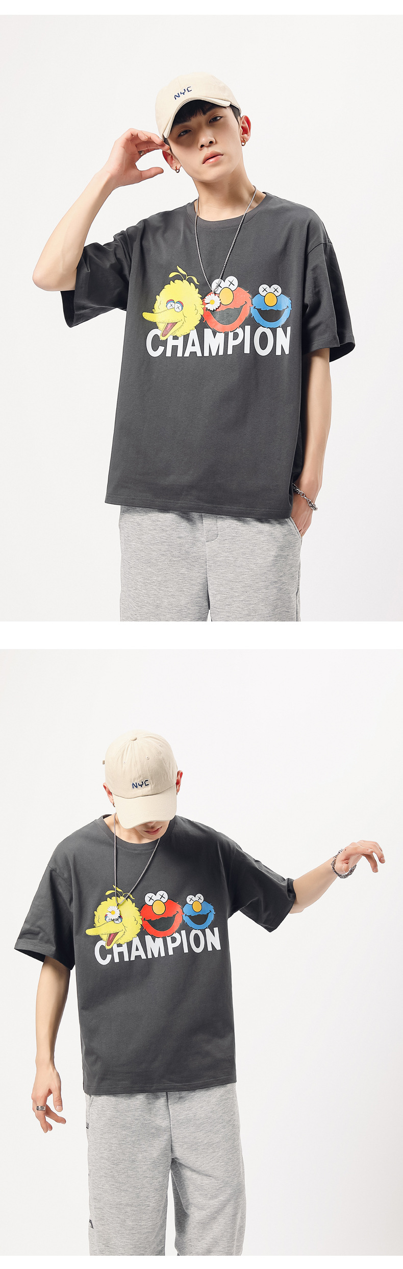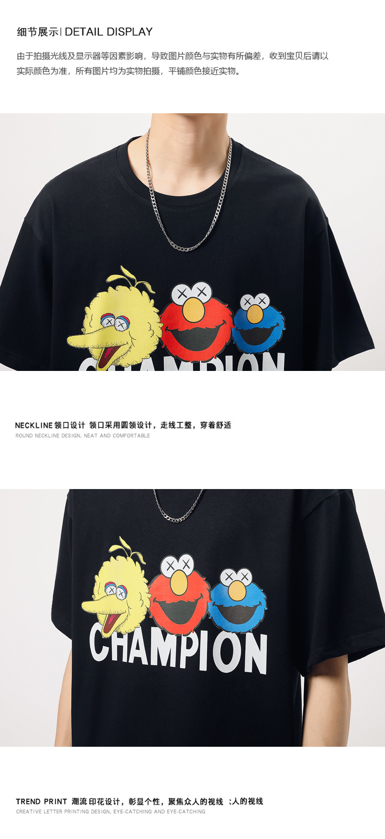 夏季卡通印花T恤男装纯棉180克短袖体恤衫男潮流半袖休闲上衣批发