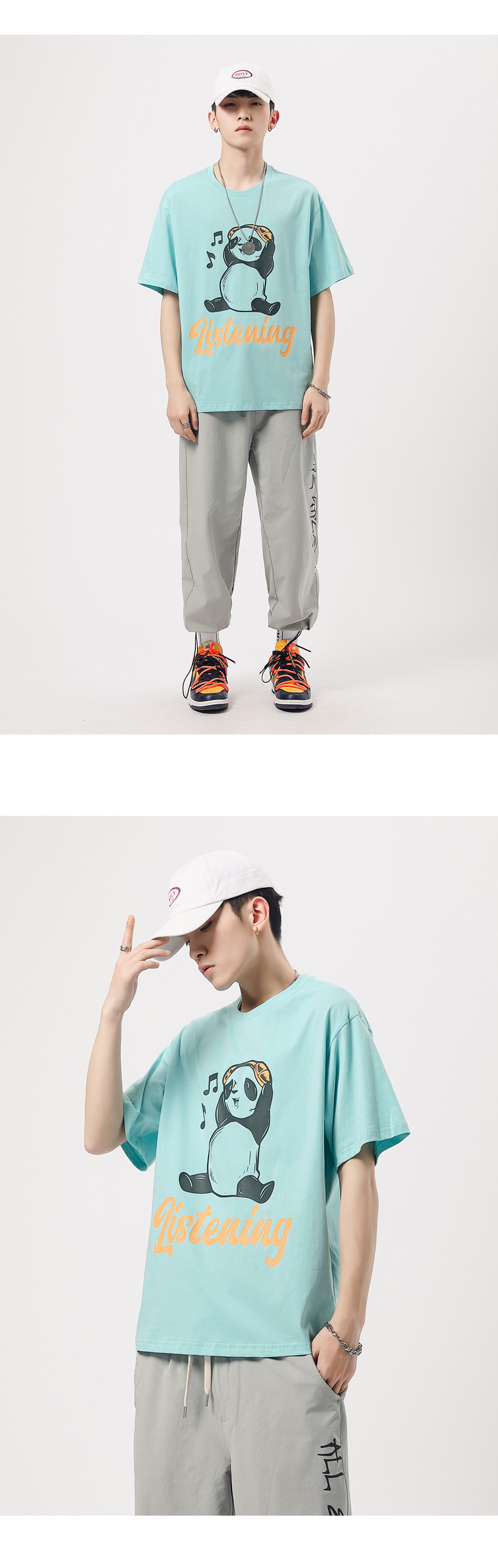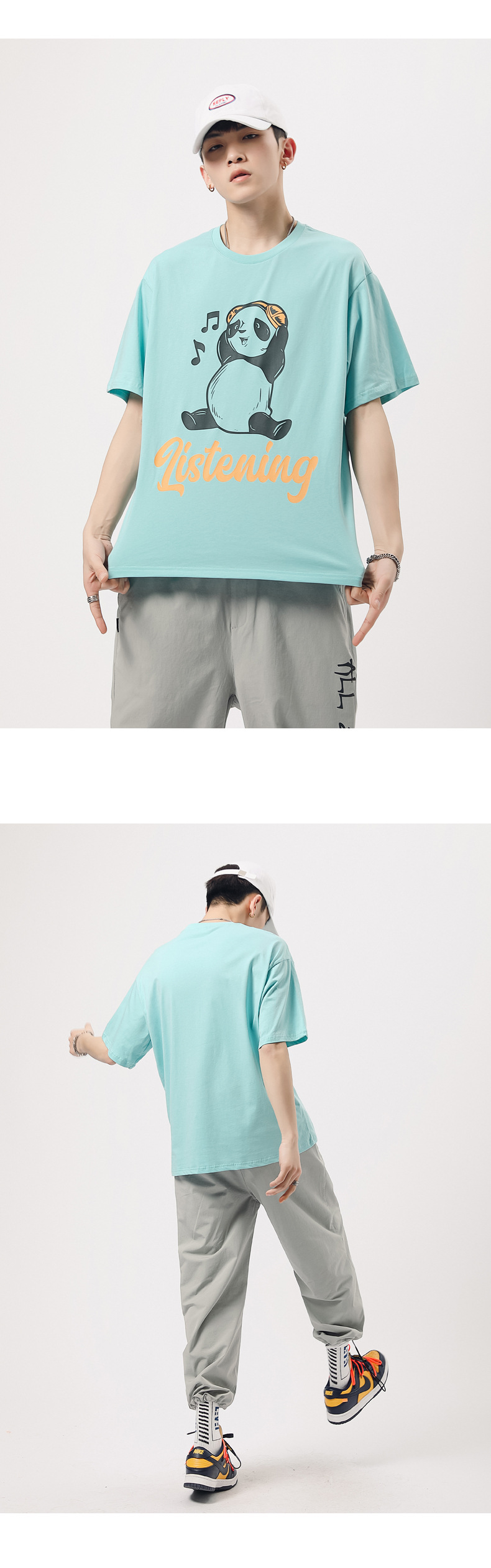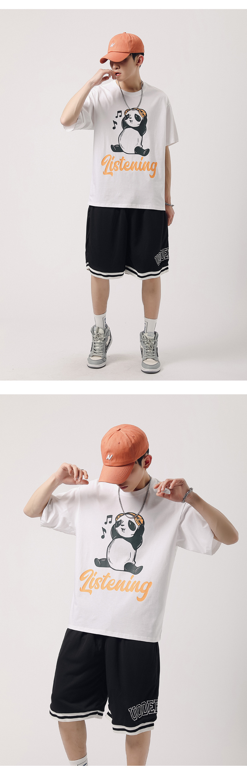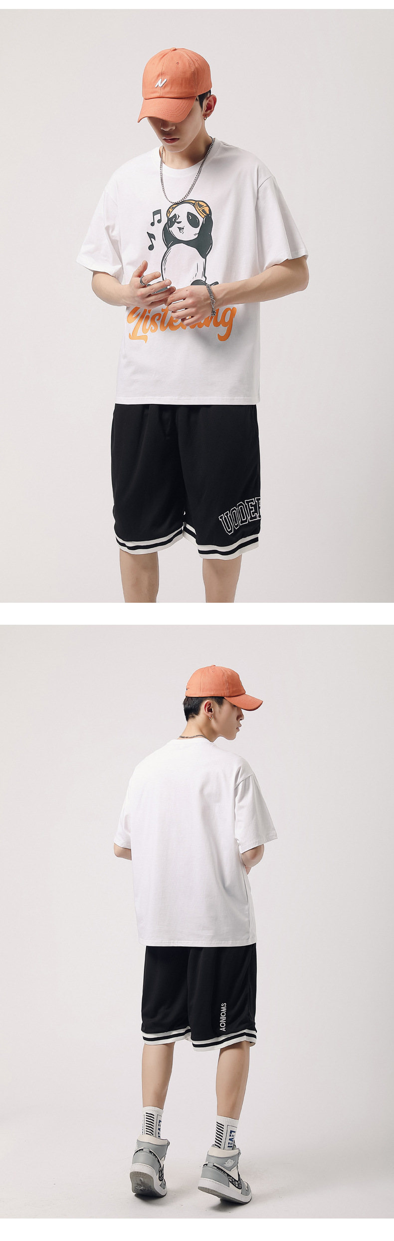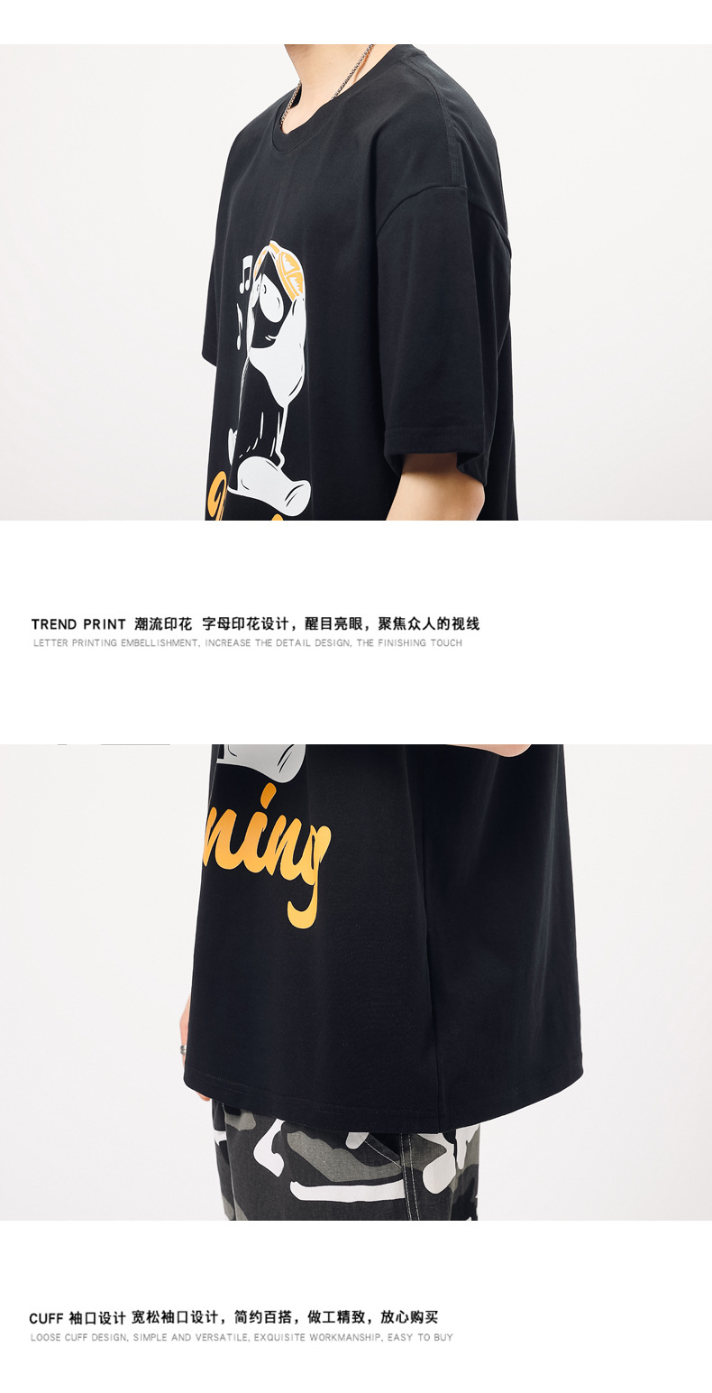 厂家货源夏季青少年潮流男T恤纯棉日系熊猫印花半袖一件代发男装