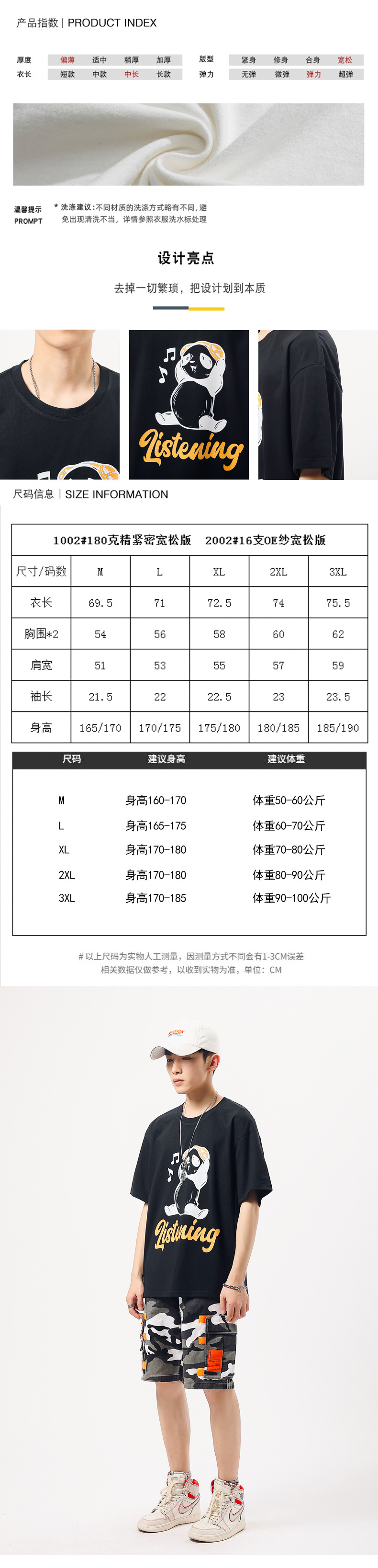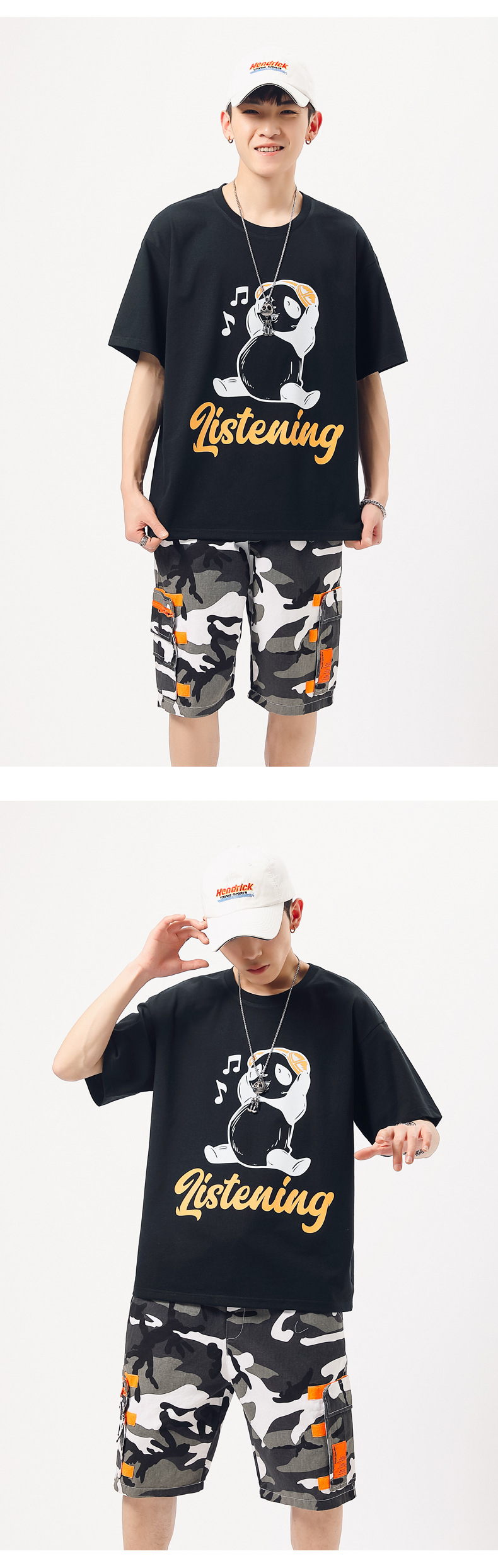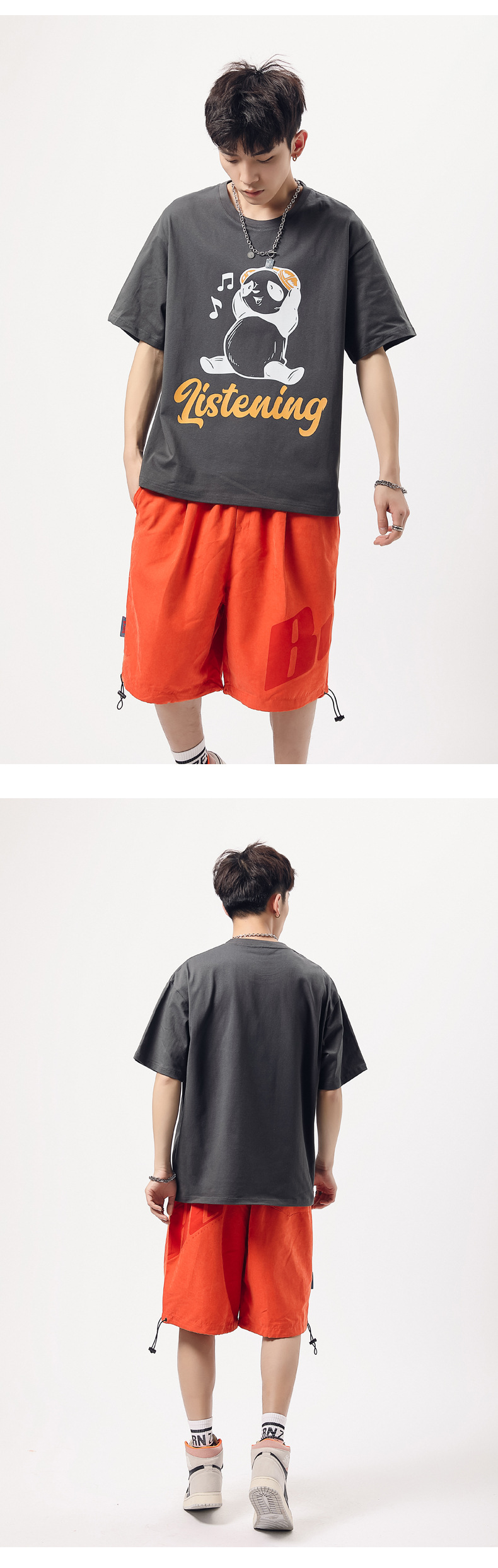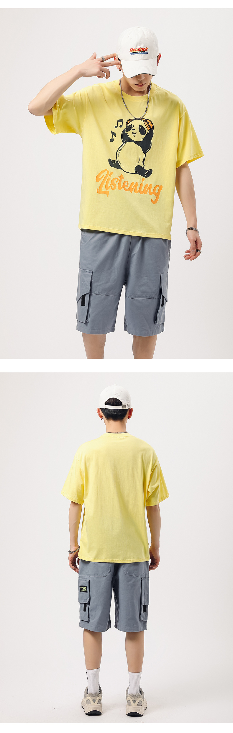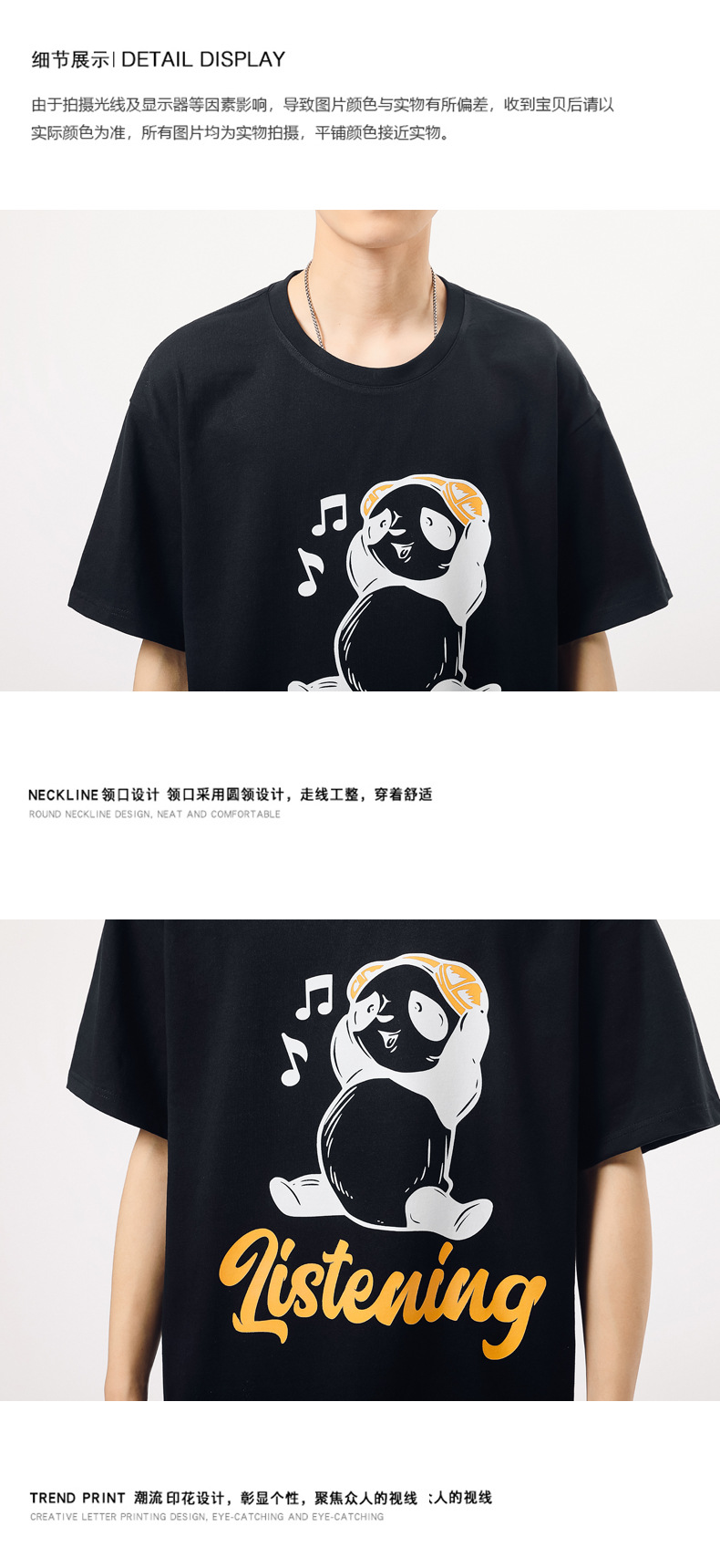 厂家货源夏季青少年潮流男T恤纯棉日系熊猫印花半袖一件代发男装