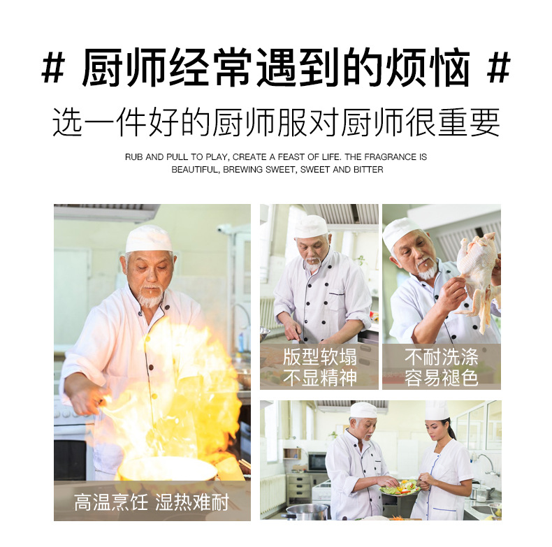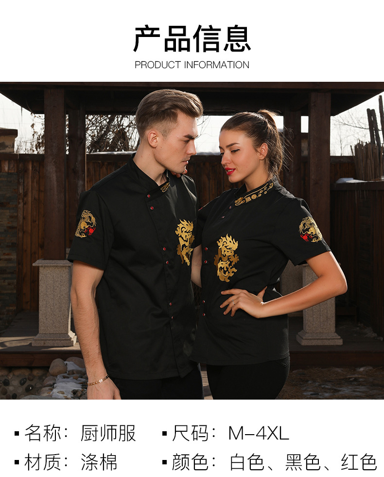 商品名称:厨师服高端工作服长袖秋冬装中国风短袖男夏季酒店后厨房餐厅大码