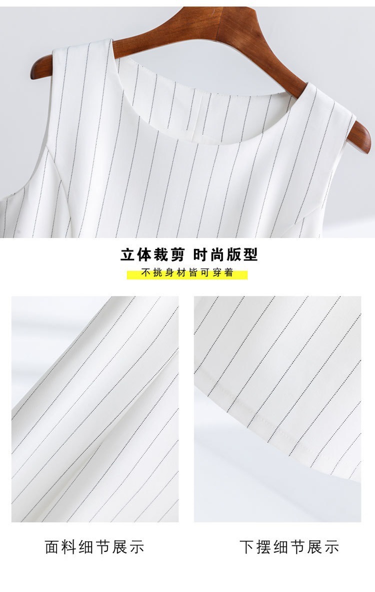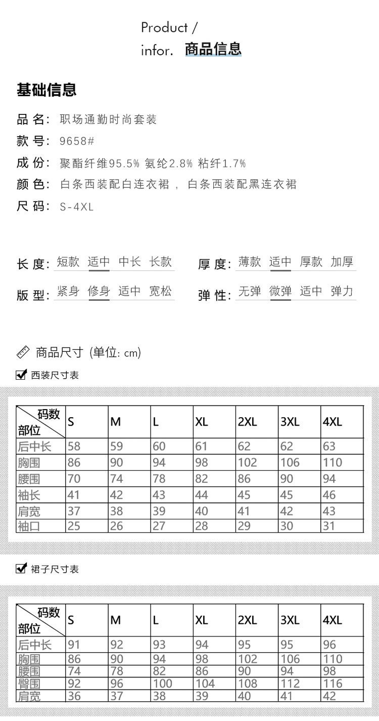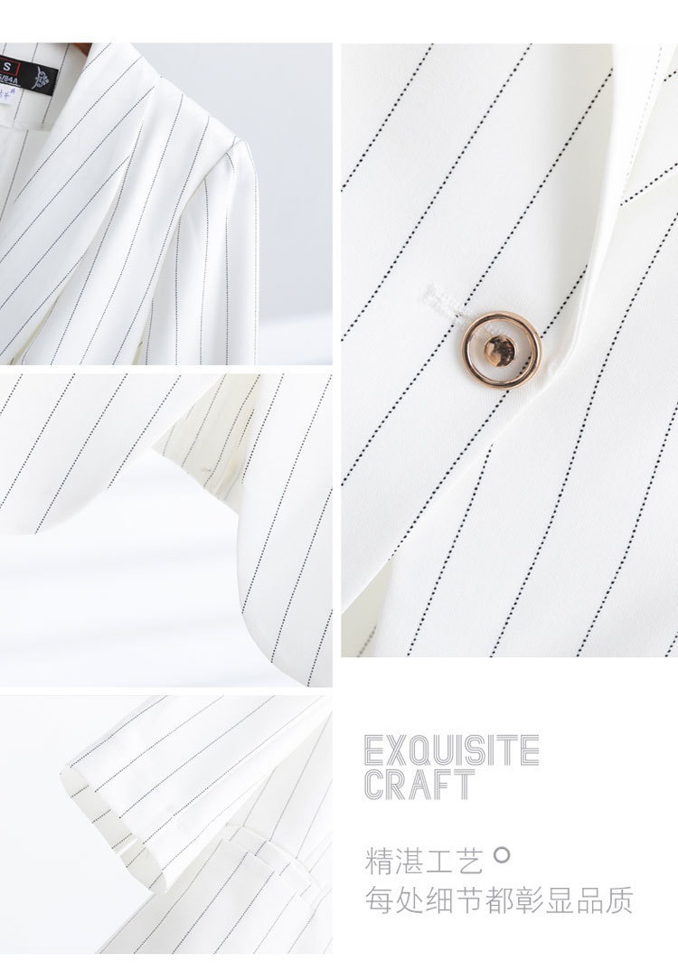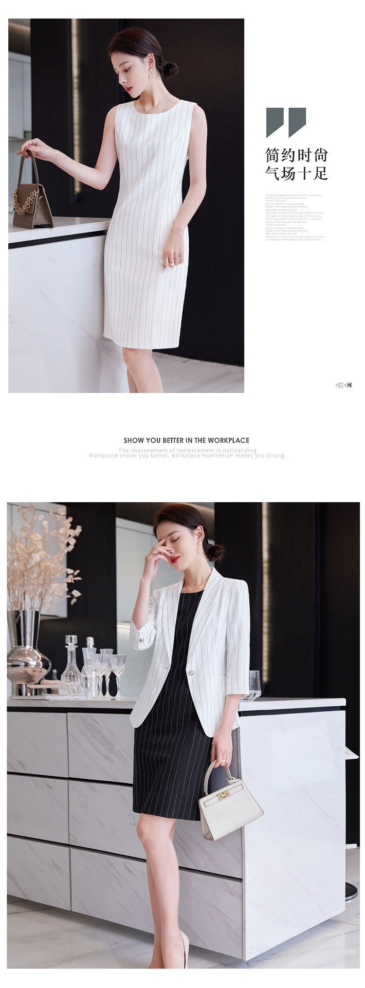 白色条纹西装连衣裙套装女职业装修身显瘦美容院主持人珠宝店套裙