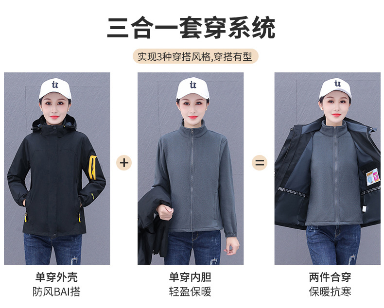 商品名称:秋冬冲锋衣男女款三合一可拆卸加绒厚户外防风防水外套工装