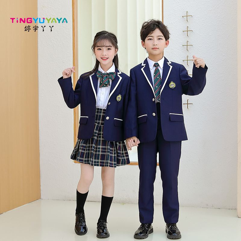 婷宇丫丫2022新款英伦风校服三件套小学生班服批发幼儿园园服礼服