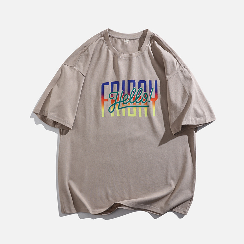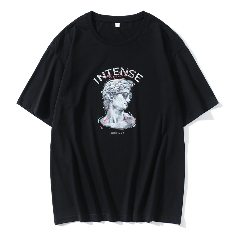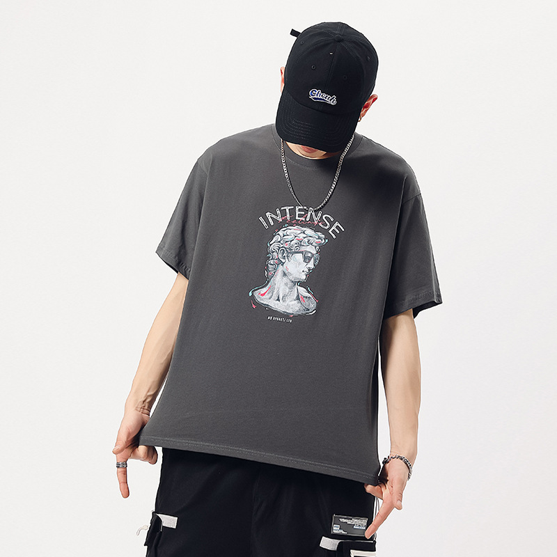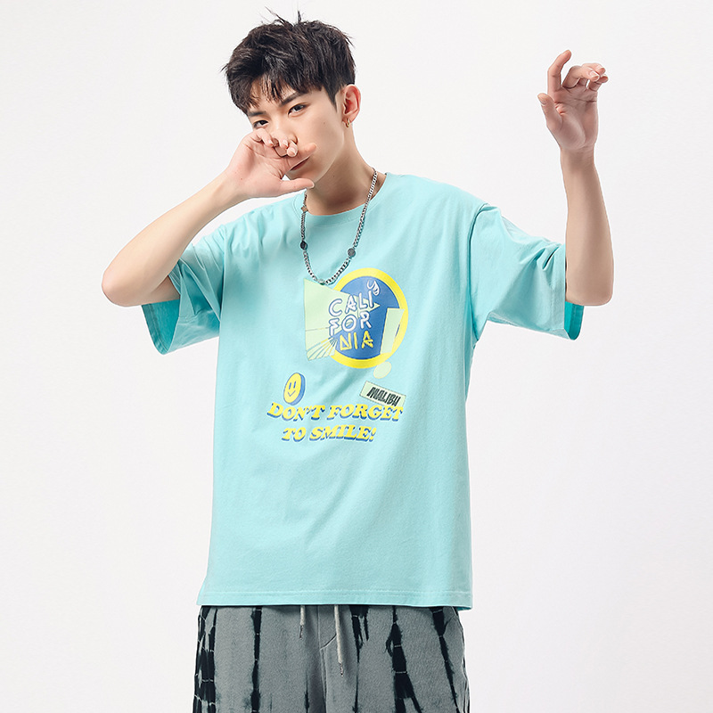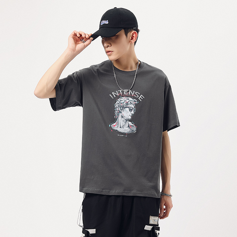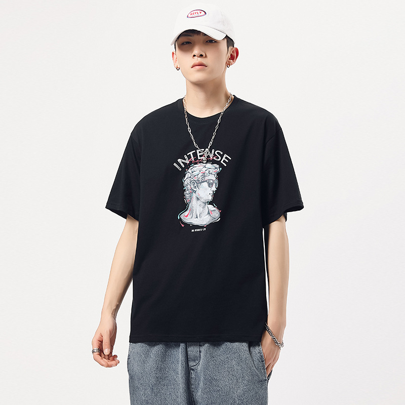 中性风夏季青少年男士短袖T恤潮牌印花圆领半截袖体恤上衣服批发