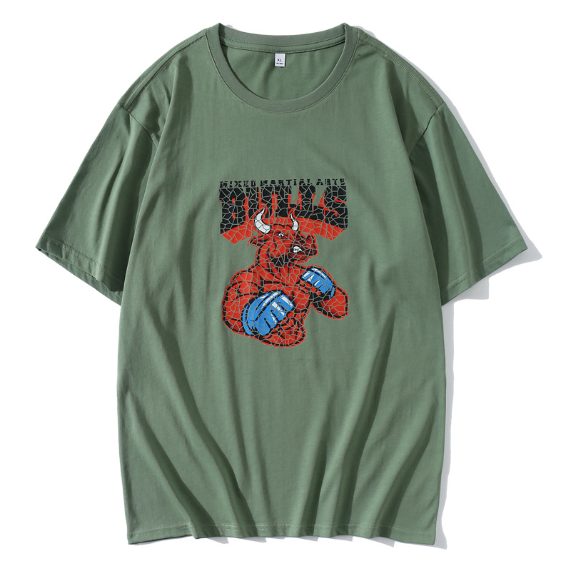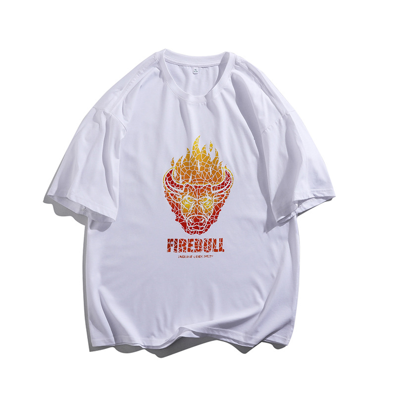 2021夏季新款火焰牛印花T恤男装180g纯棉短袖体恤衫宽松圆领潮男t