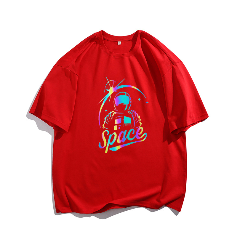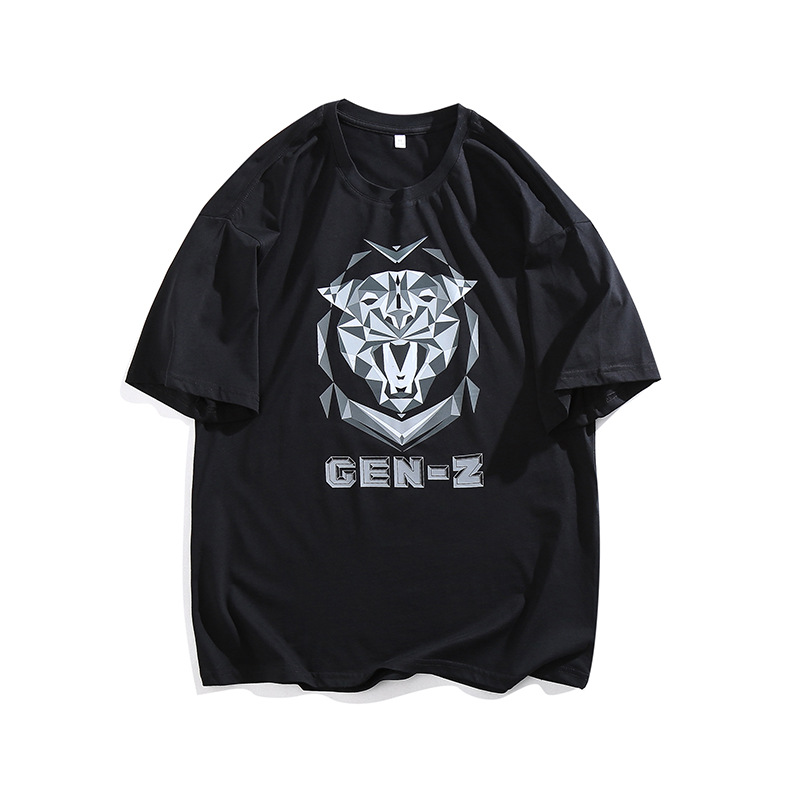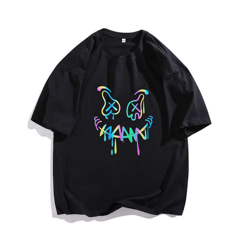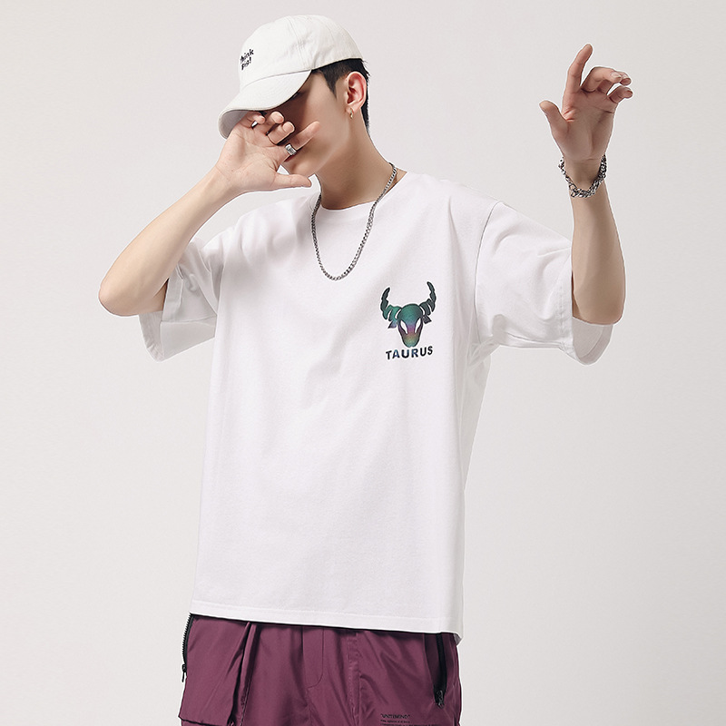 夏季青少年男士港风短袖T恤纯棉落肩袖反光印花半袖体恤现货批发