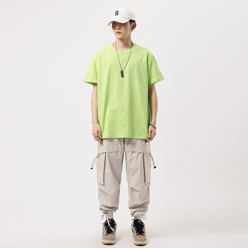 2021夏季新款青年男士短袖T恤180g纯棉落肩袖体恤宽松印花半袖潮t