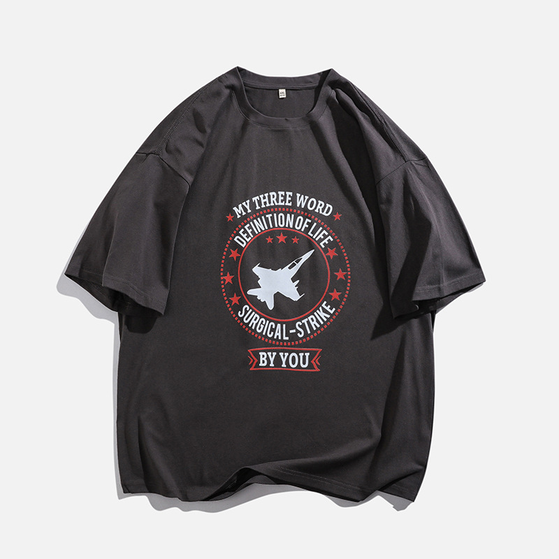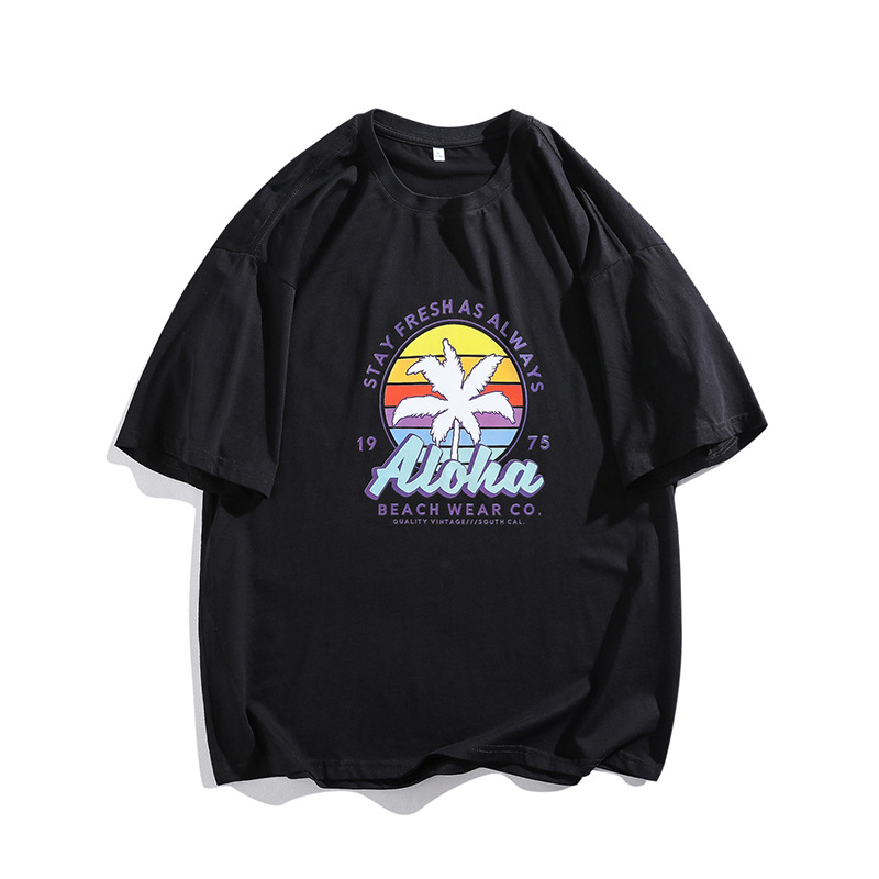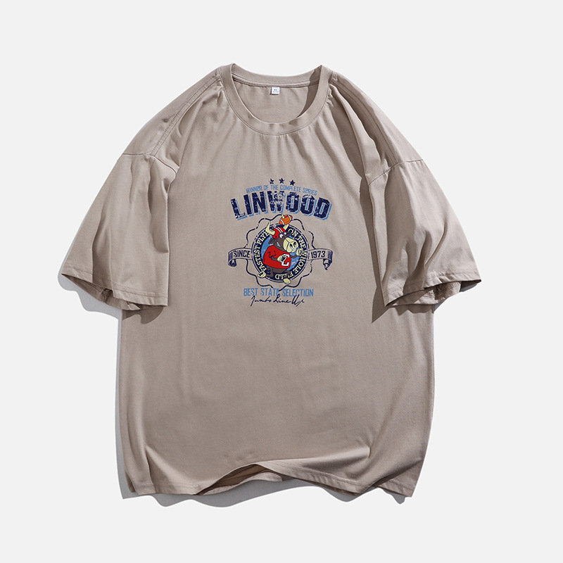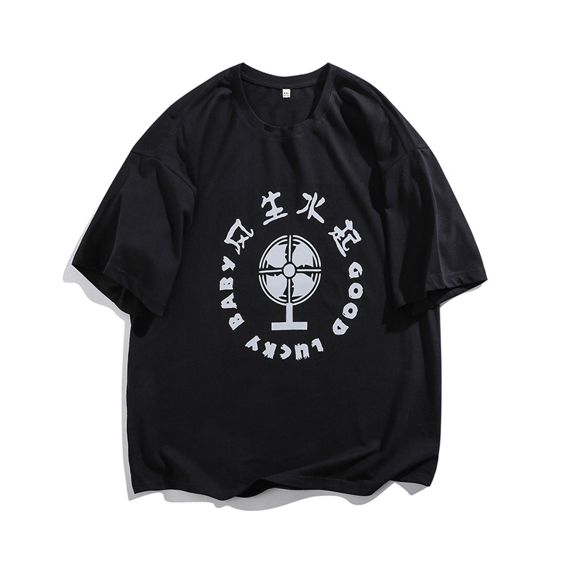 夏季港风男装印花短袖t恤180g纯棉圆领宽松落肩袖体恤男半袖上衣