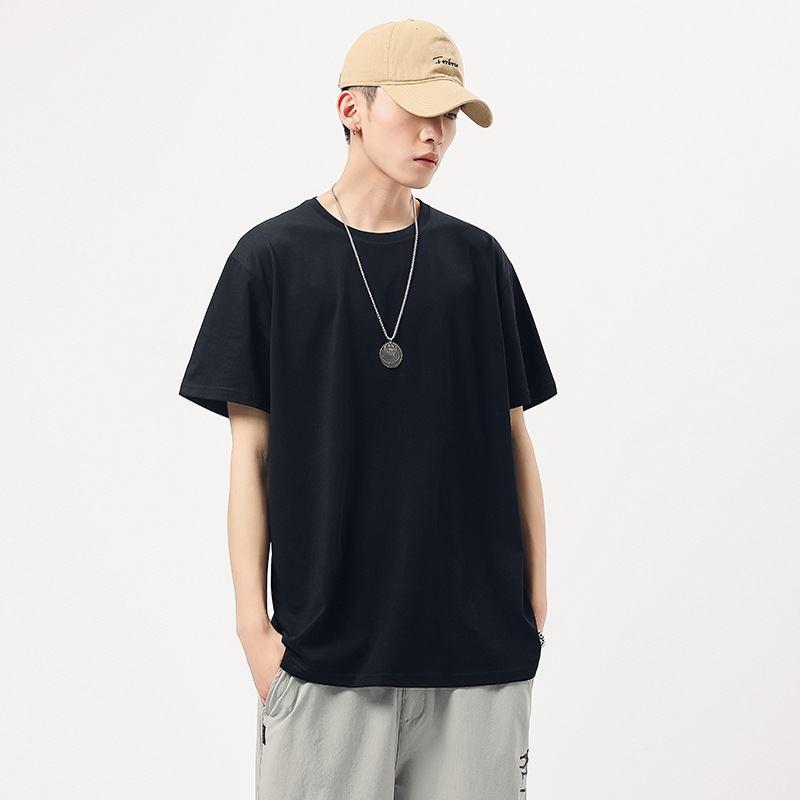 夏季港风男士简约短袖T恤黑色180克圆领半袖体恤百搭时尚上衣男装