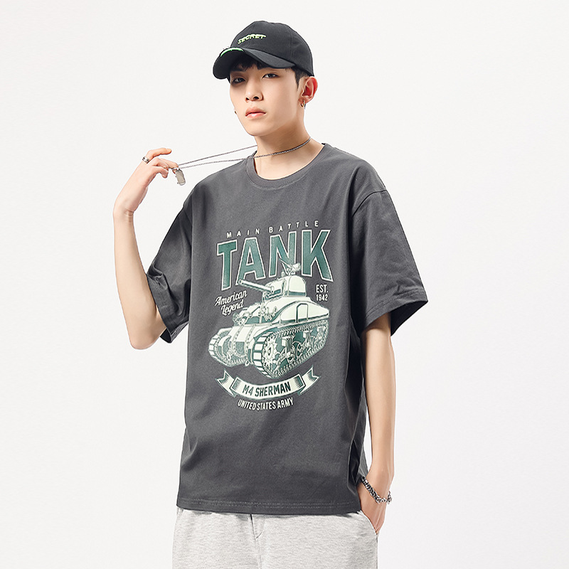 厂家直销批发100%纯棉短袖T恤男装日系夏季坦克印花半袖上衣体恤