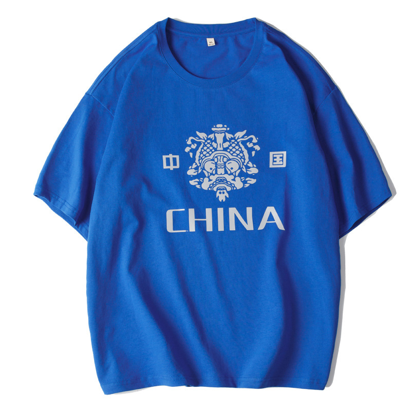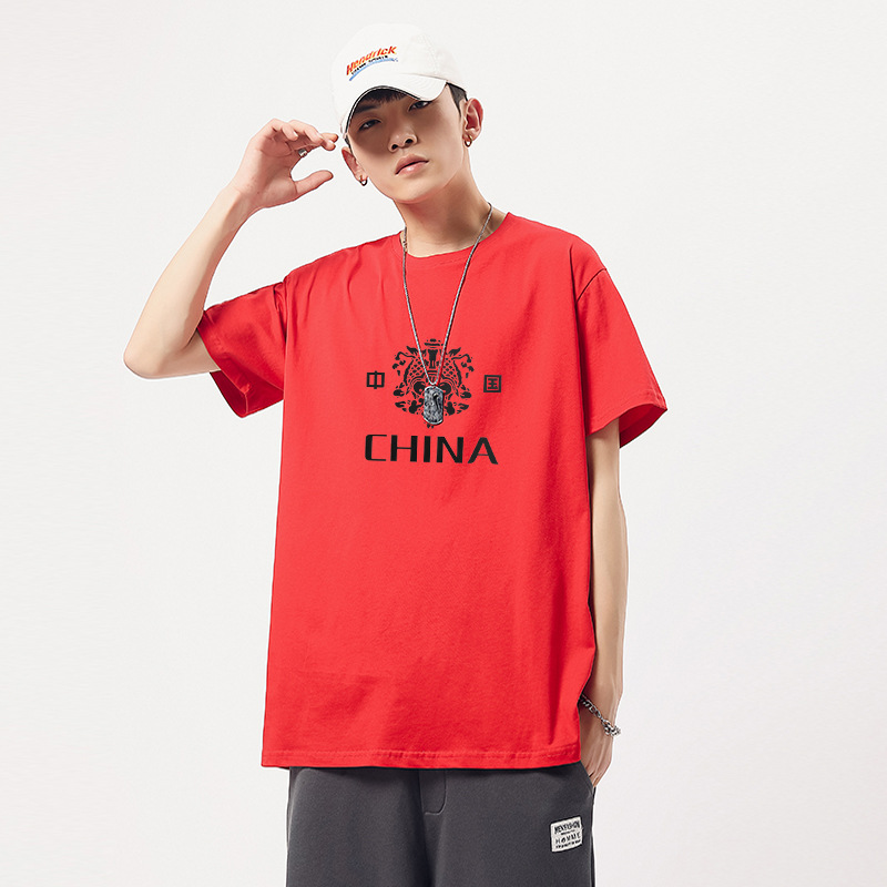 240g重磅纯棉短袖T恤男装夏季中国红印花半袖体恤圆领打底衫潮牌