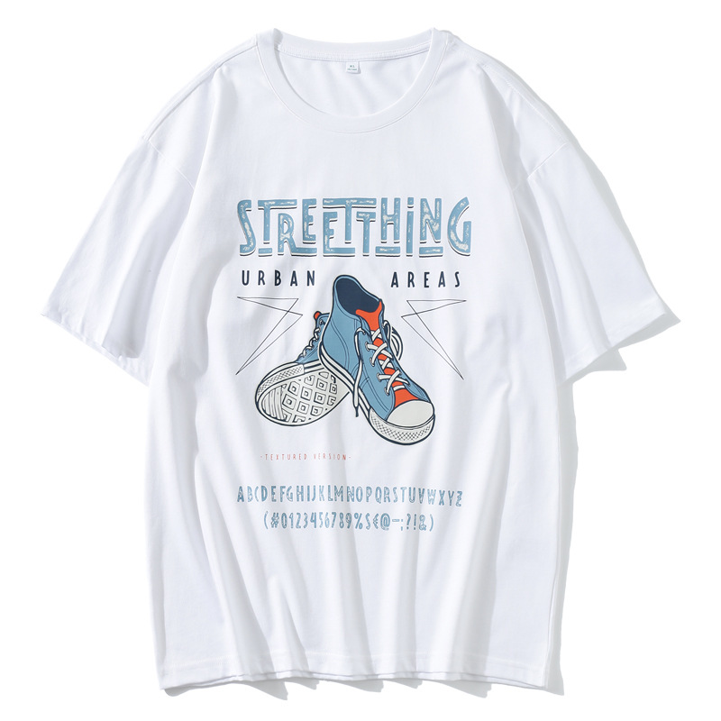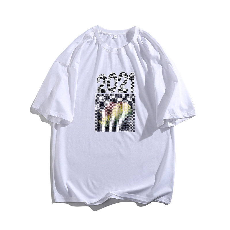 2021夏季新款青年纯棉短袖T恤男装宽松印花半截袖体恤衫圆领批发