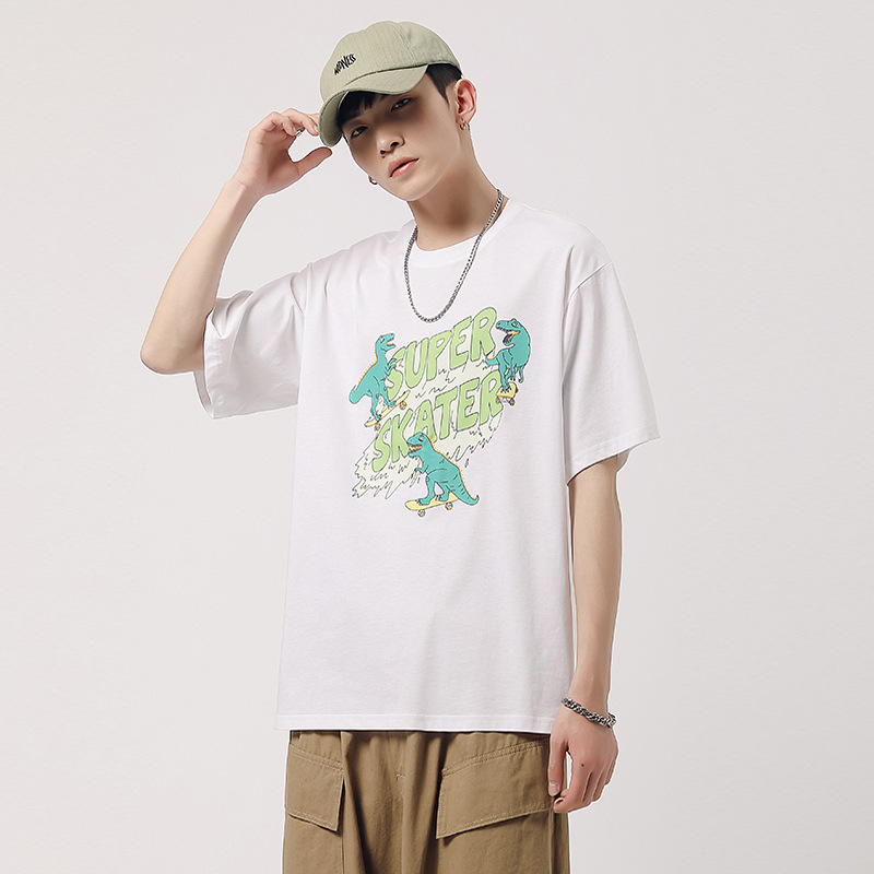 夏季日系恐龙印花T恤男装青年潮流时尚百搭圆领短袖体恤180克纯棉