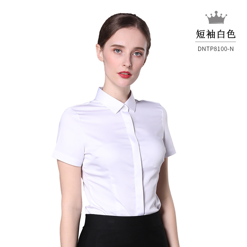 珍珠缎竹纤维衬衫短袖女士衬衫修身透气女士职业装知性正装可代发