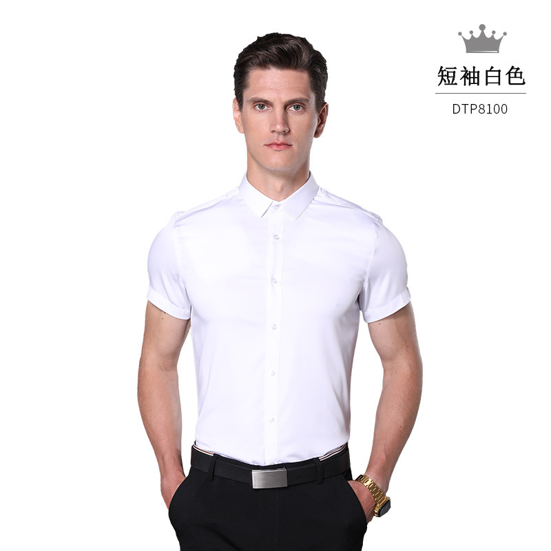 珍珠缎竹纤维衬衫短袖男士衬衫粘纤修身正装上班商务职业装可代发