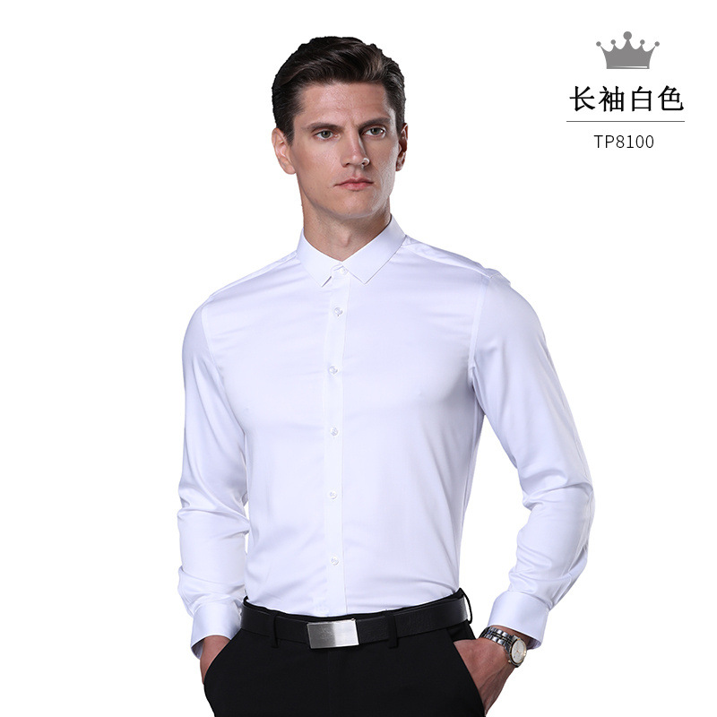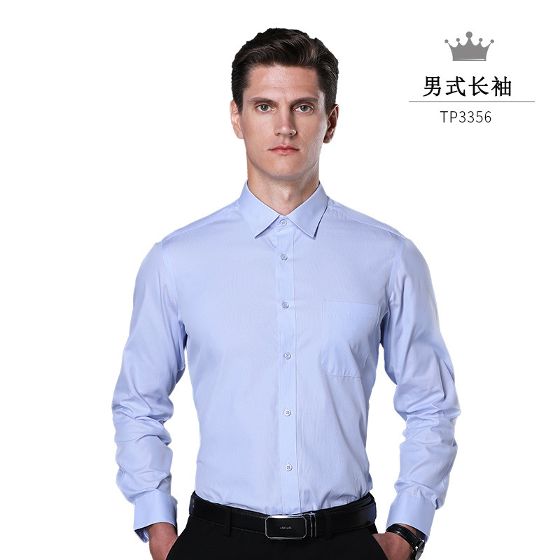 高端液氨免烫全棉男士商务正装长袖衬衫白蓝上班单色男士衬衫