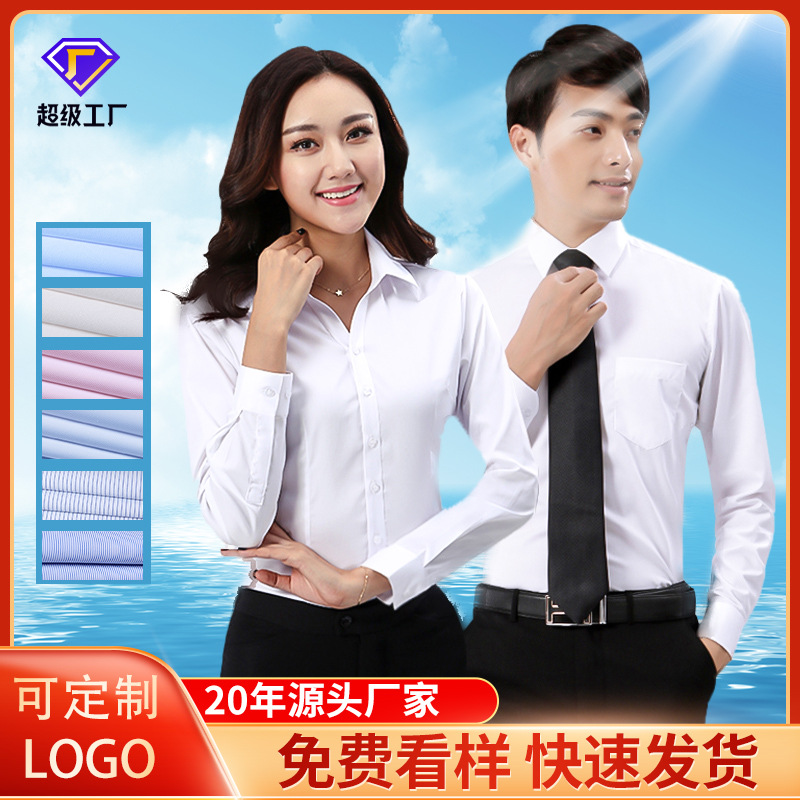 男女同款工衣修身销售业务长袖衬衫工装银行职业装衬衣绣logo批发