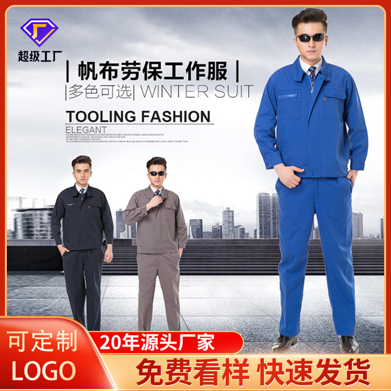 帆布加厚长袖工作服套装印制劳保厂服车间耐磨工装印做工衣刺绣