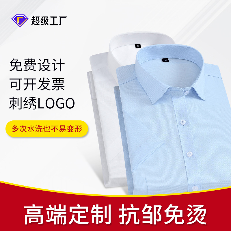 职业免烫衬衫定制绣logo印字短袖修身韩版男女款衬衣休闲商务工装