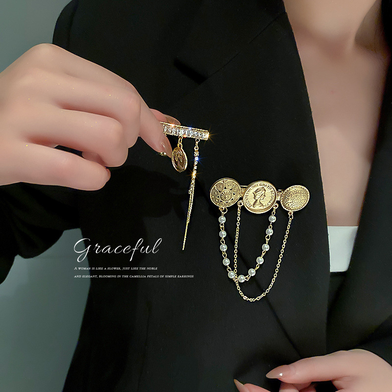 欧美时尚夸张个性胸针镶钻锆石流苏胸饰网红气质设计感衣服配饰女