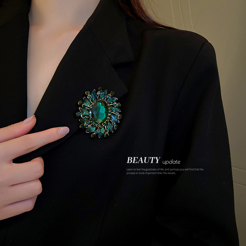 祖母绿镶钻花朵胸针欧美时尚新款复古胸花别针气质百搭外套配饰女