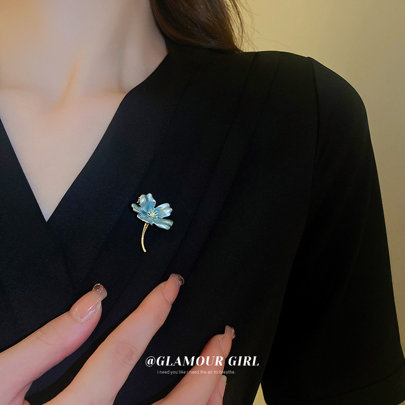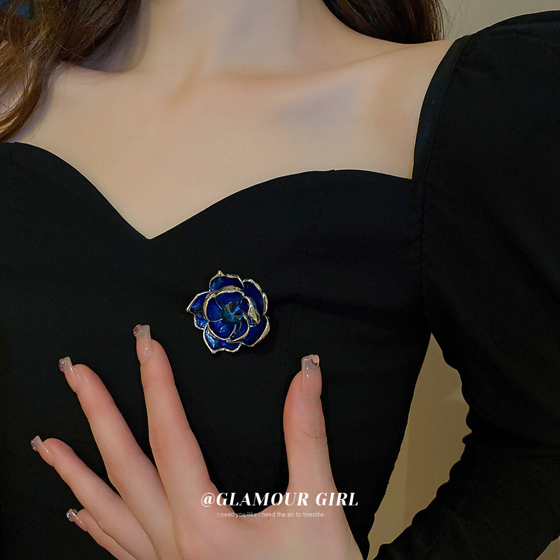 气质镶钻蓝色玫瑰花朵胸针法式时尚小众设计感配饰古风个性衣饰女