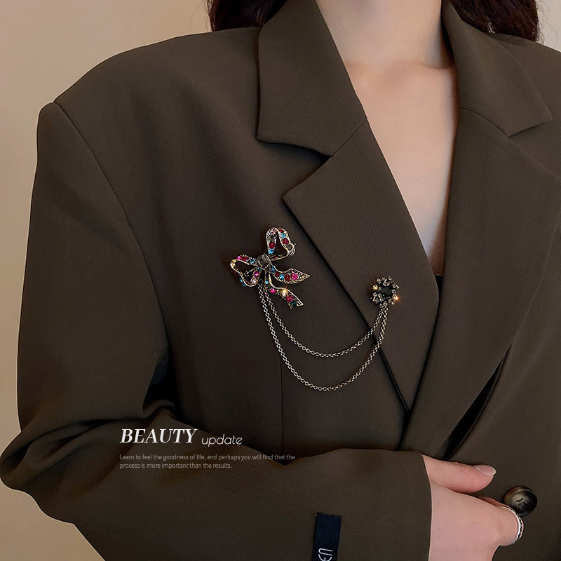 彩钻蝴蝶结链条流苏胸针欧美复古宫廷风别针气质高级感服饰配件女