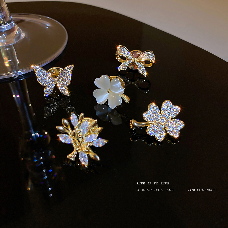 真金电镀锆石小树蝴蝶结胸针女花朵衣服配饰小巧领针固定防走光扣