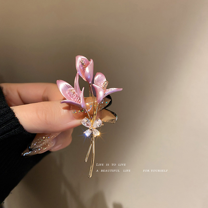 法式锆石郁金香花朵胸针设计感时尚气质衣饰网红个性百搭服装配饰