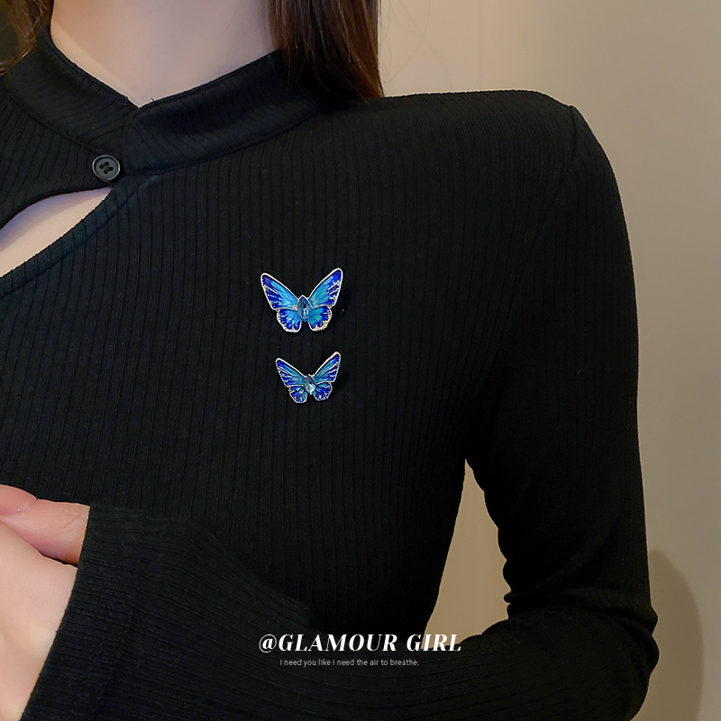 时尚个性国潮镶钻镂空彩色蝴蝶胸针气质设计感配饰甜美网红衣饰女