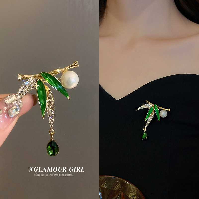 小清新珍珠镶钻滴油竹子水晶吊坠胸针时尚气质配饰设计感个性衣饰